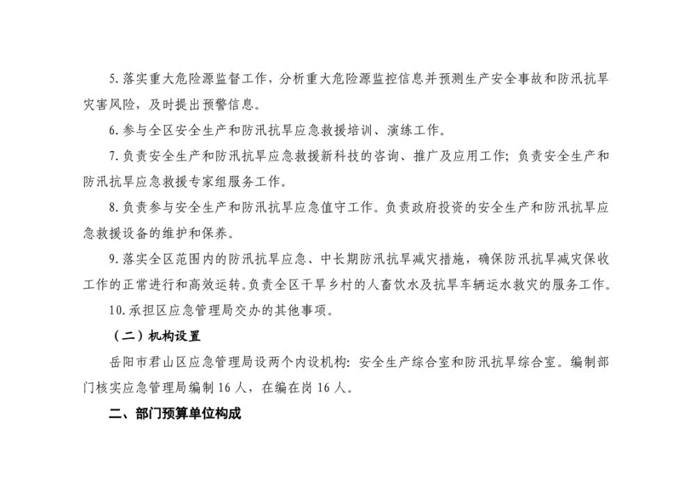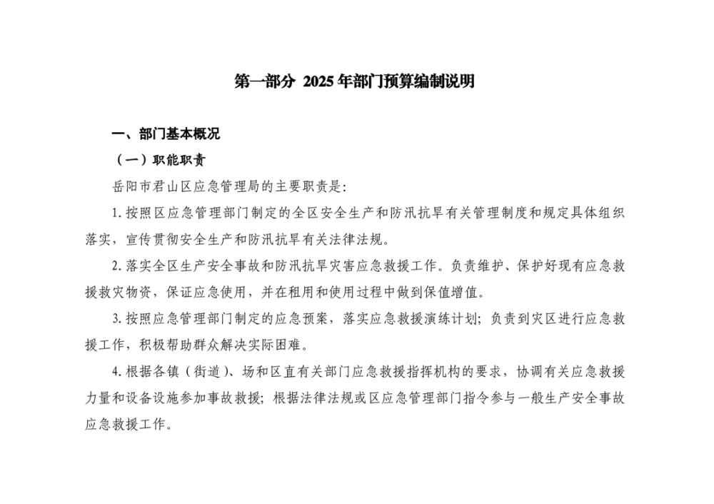 2025年岳陽市君山區(qū)應(yīng)急管理局部門預(yù)算公開