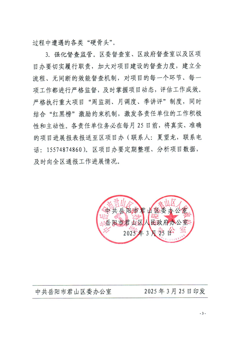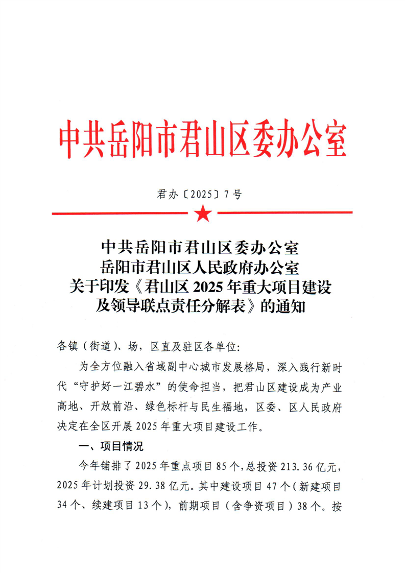 關于印發(fā)《君山區(qū)2025年重大項目建設及領導聯(lián)點責任分解表》的通知