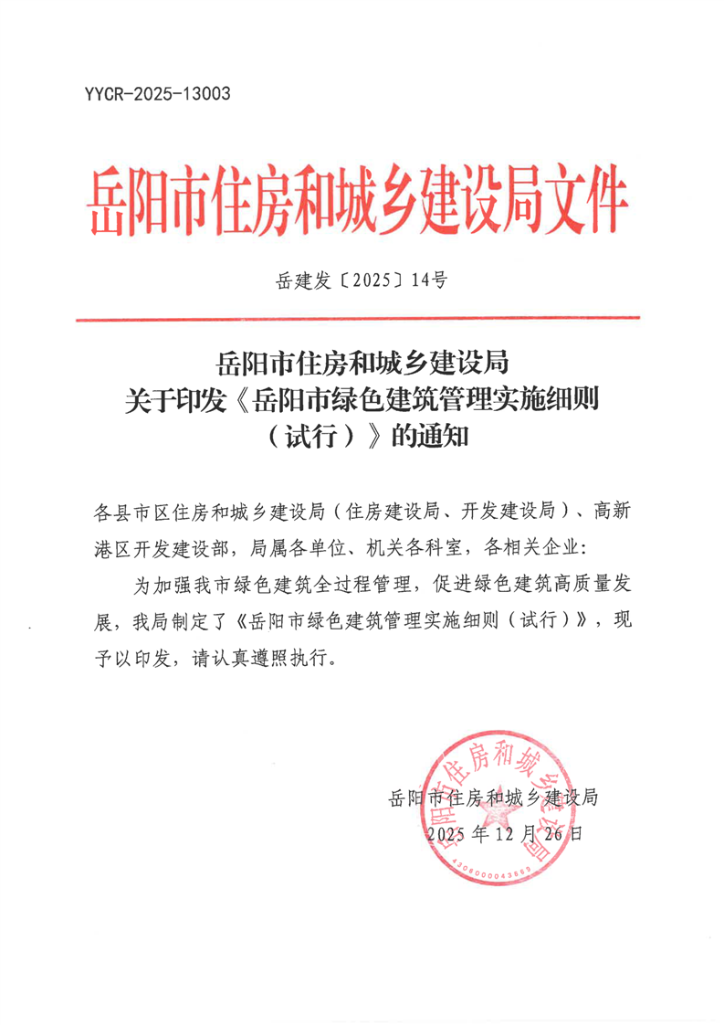 關(guān)于印發(fā)《岳陽(yáng)市綠色建筑管理實(shí)施細(xì)則(試行)》的通知