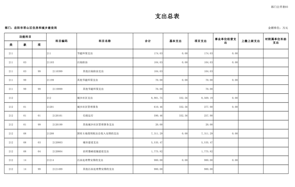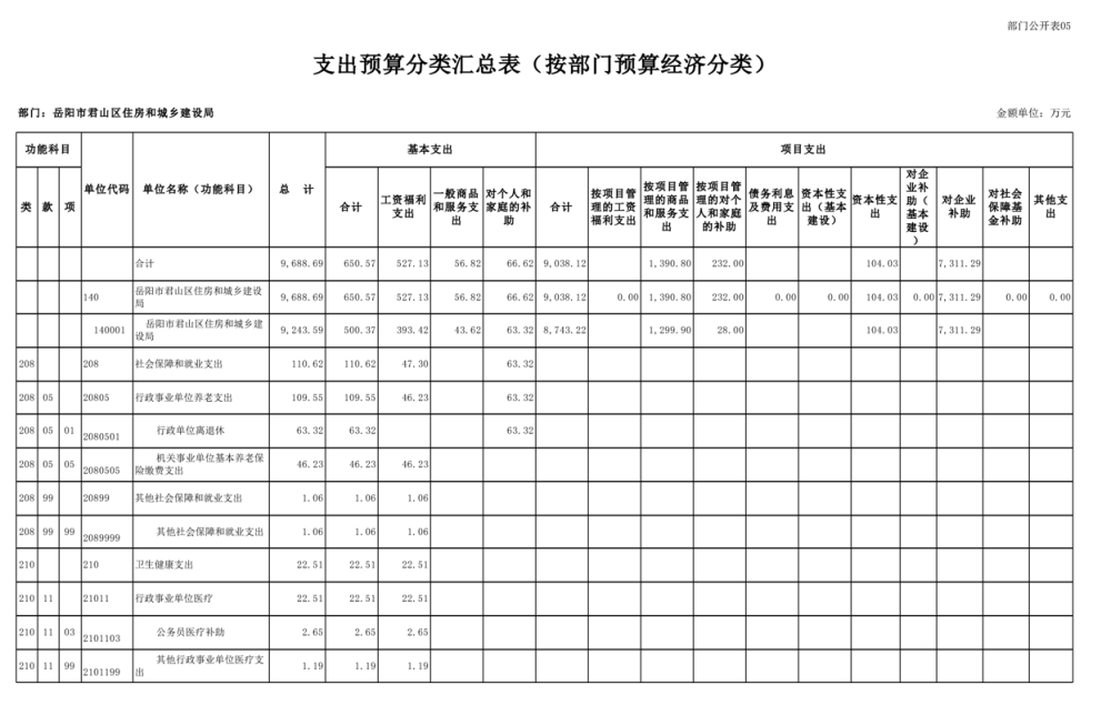 2025年岳陽市君山區(qū)住房和城鄉(xiāng)建設(shè)局(部門)預(yù)算公開