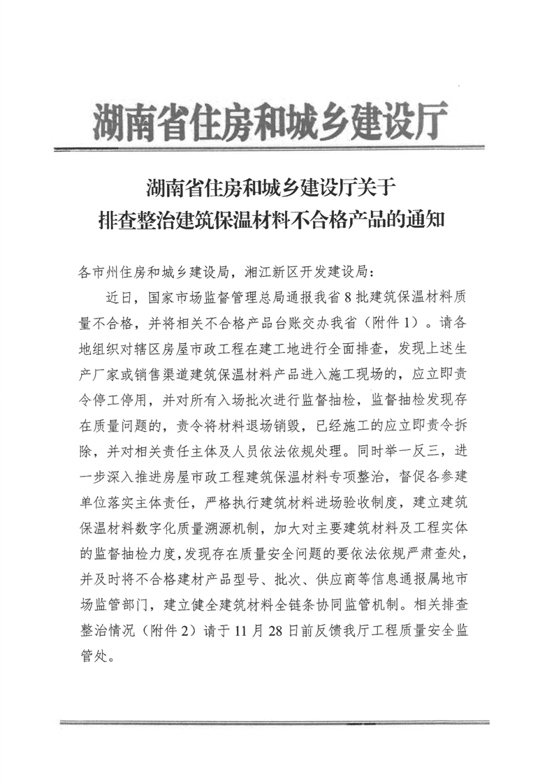 關于迅速開展建筑保溫材料不合格產(chǎn)品排查整治的通知