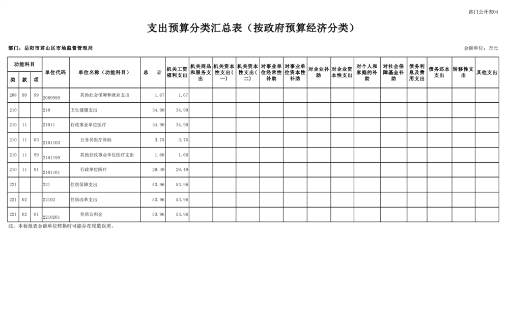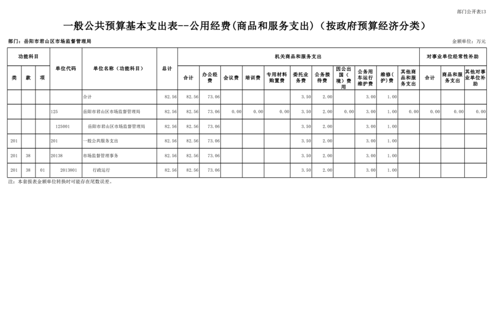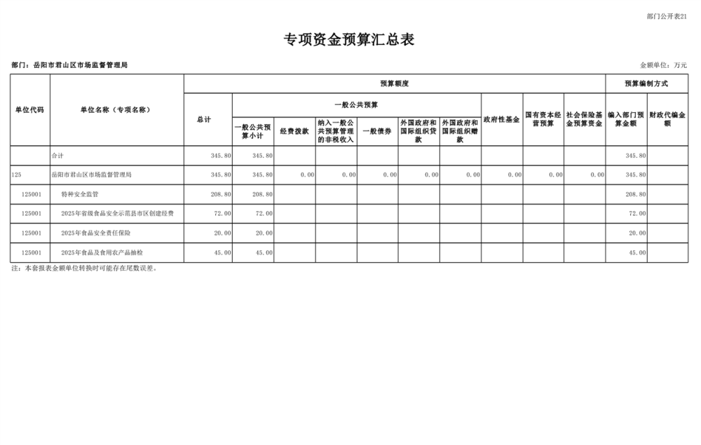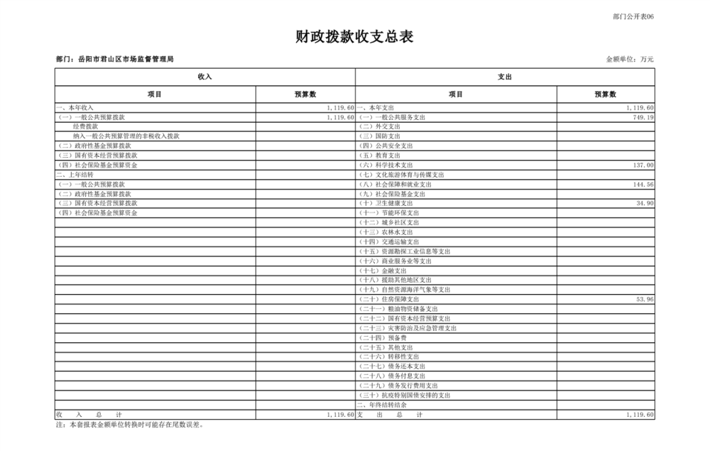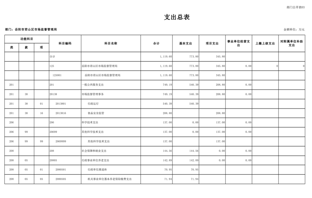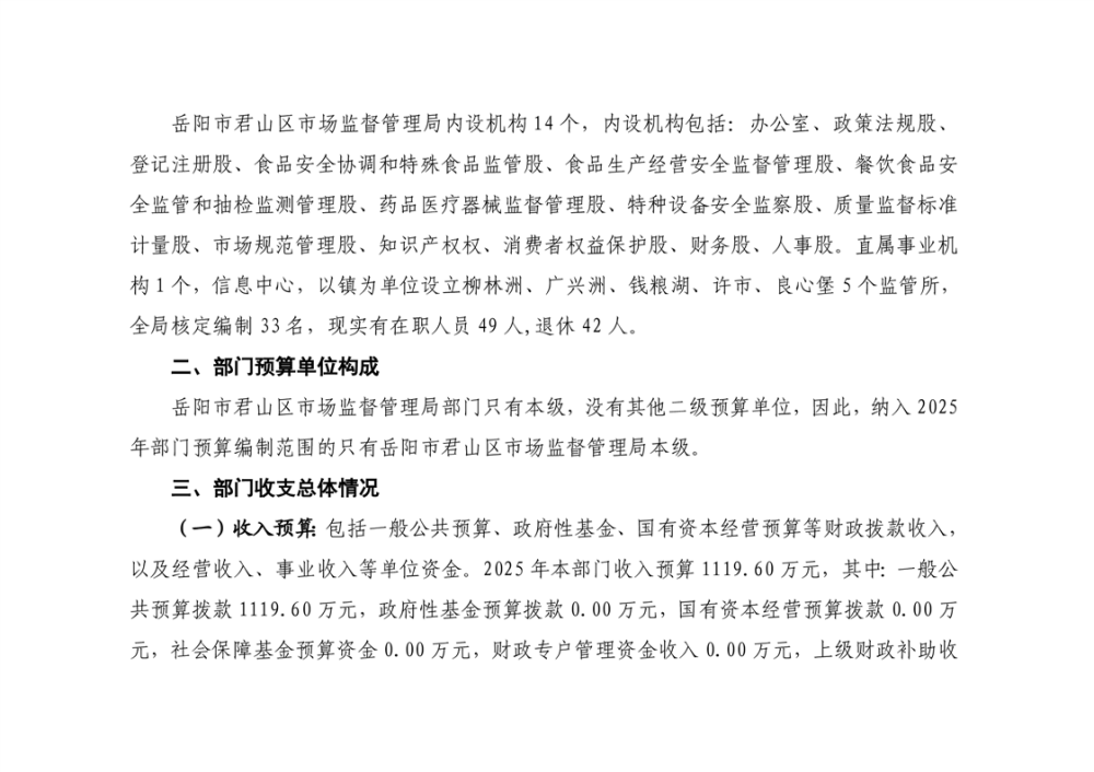 2025年岳陽市君山區(qū)市場監(jiān)督管理局部門預算公開