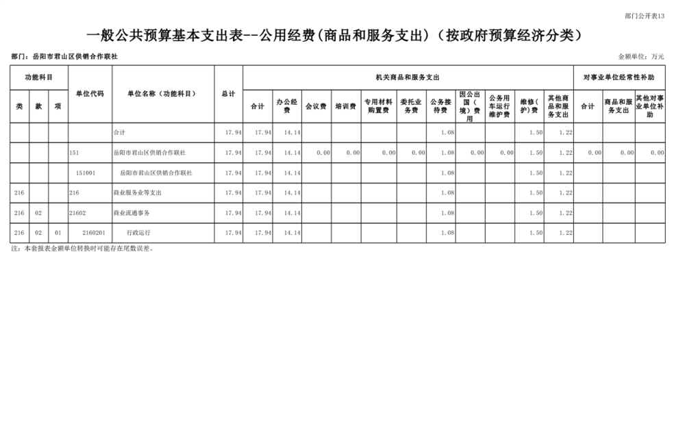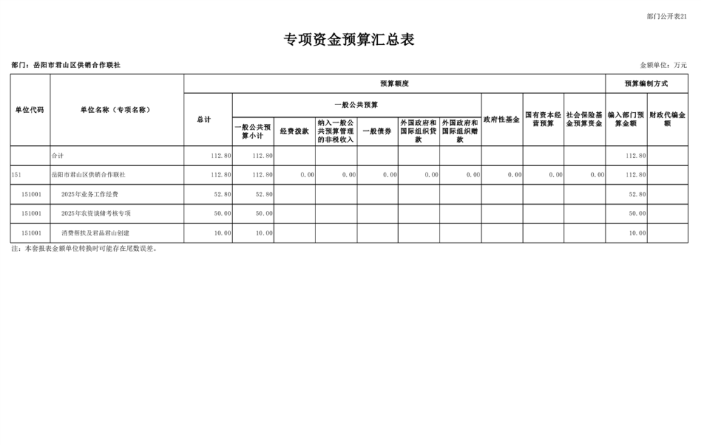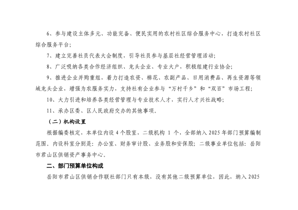 2025年岳陽市君山區(qū)供銷合作聯(lián)社部門預算公開