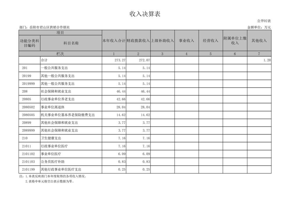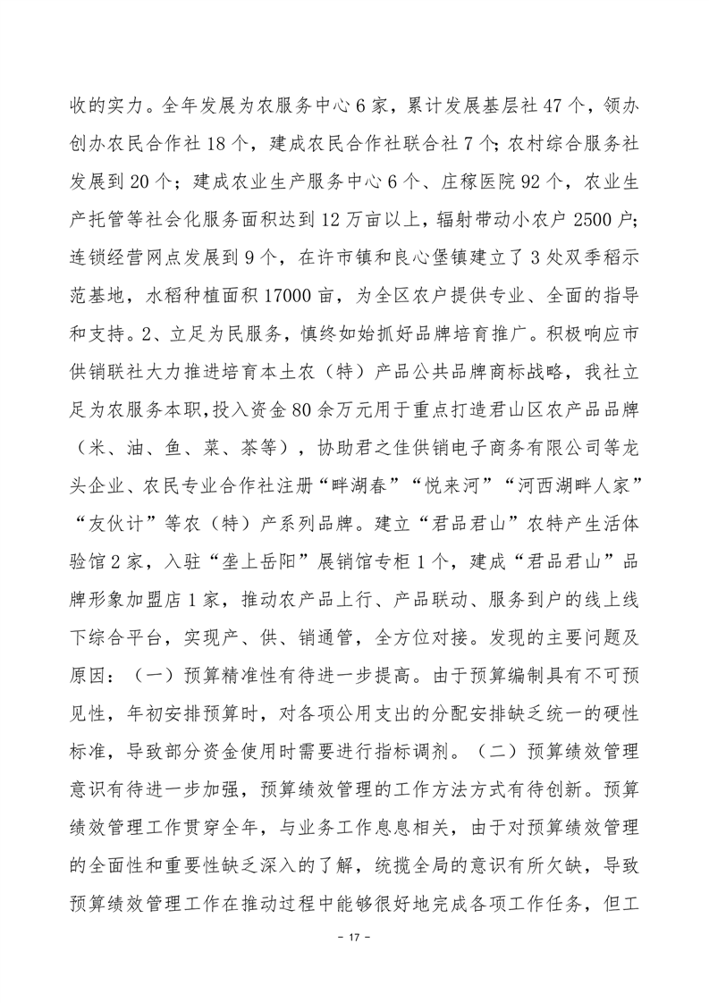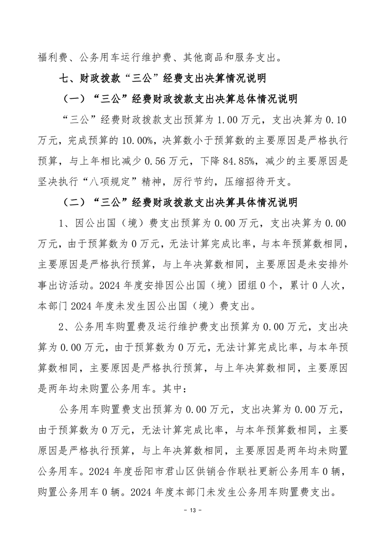 2024年度岳陽市君山區(qū)供銷合作聯(lián)社部門決算公開