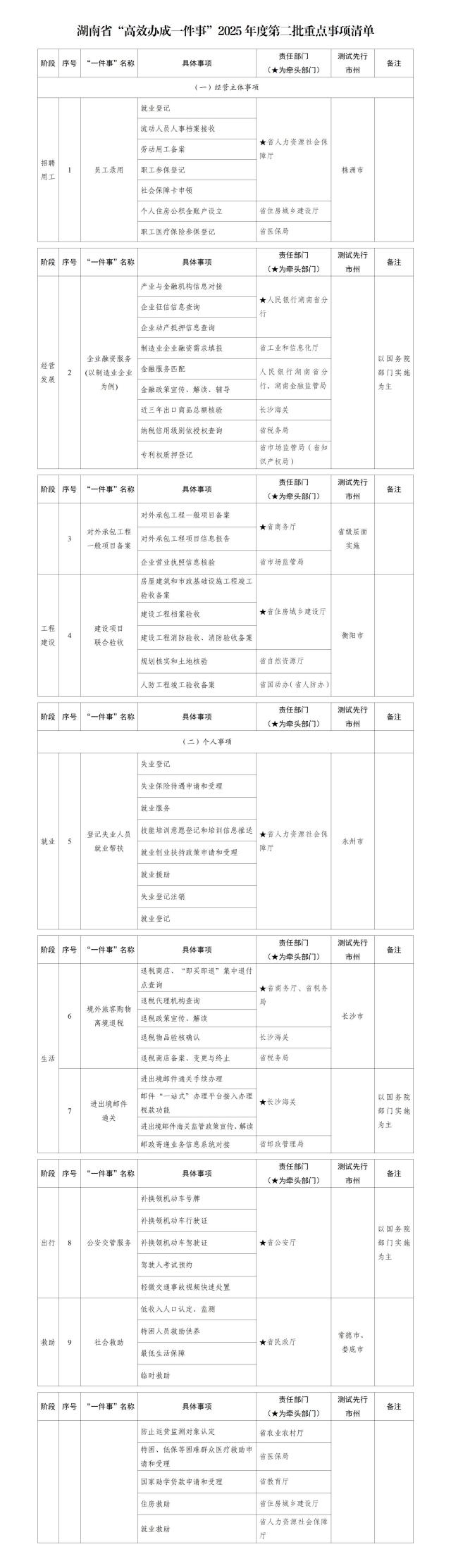 附件:湖南省“高效辦成一件事”2025年度第二批重點事項推進安排