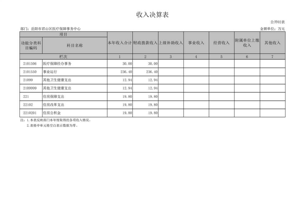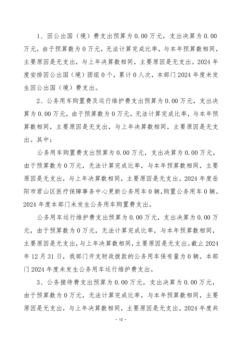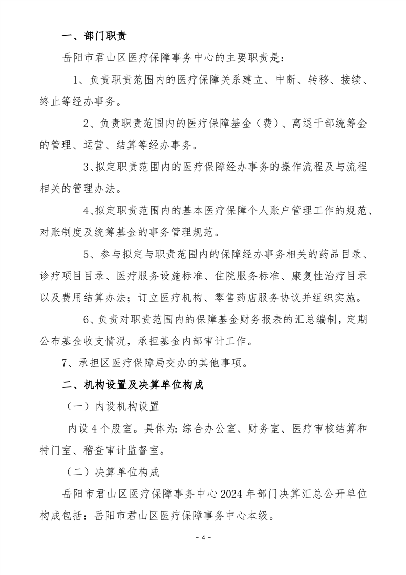 2024年度岳陽市君山區(qū)醫(yī)療保障事務中心部門決算公開