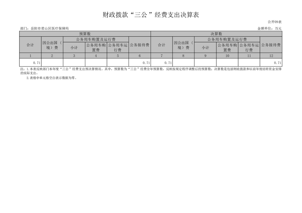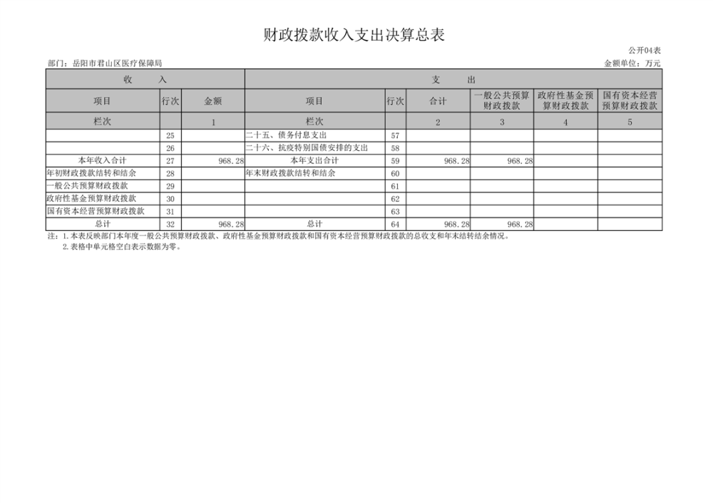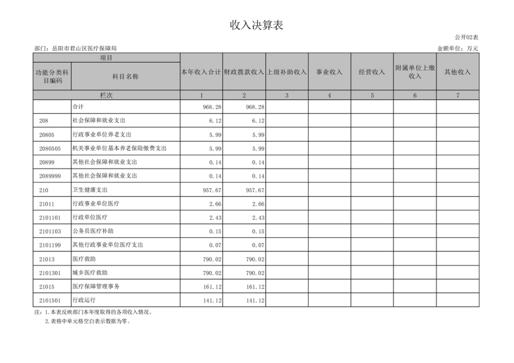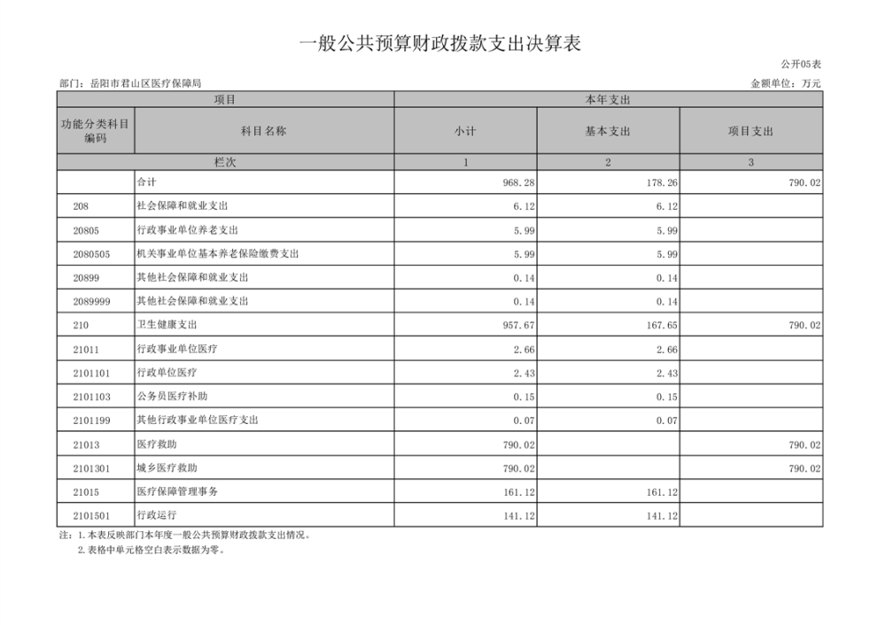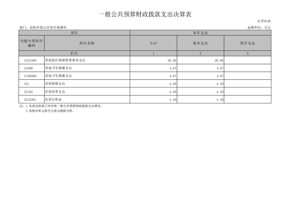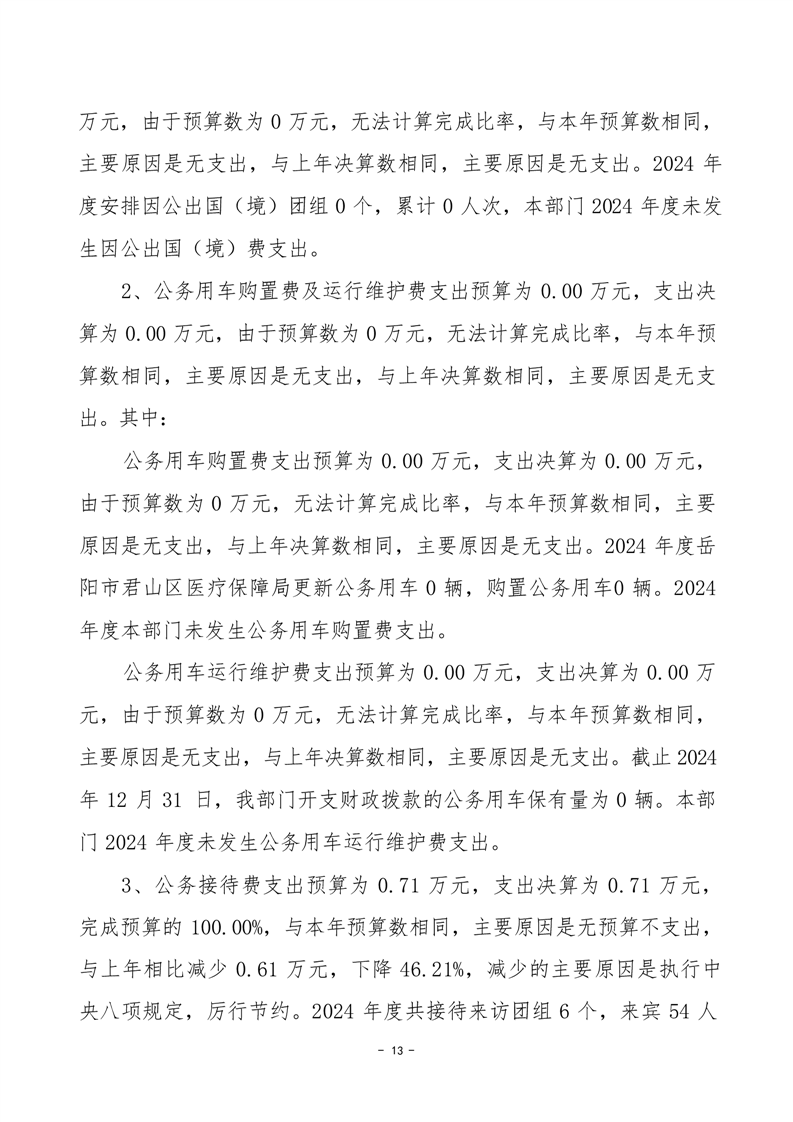 2024年度岳陽市君山區(qū)醫(yī)療保障局(本級) 部門決算公開