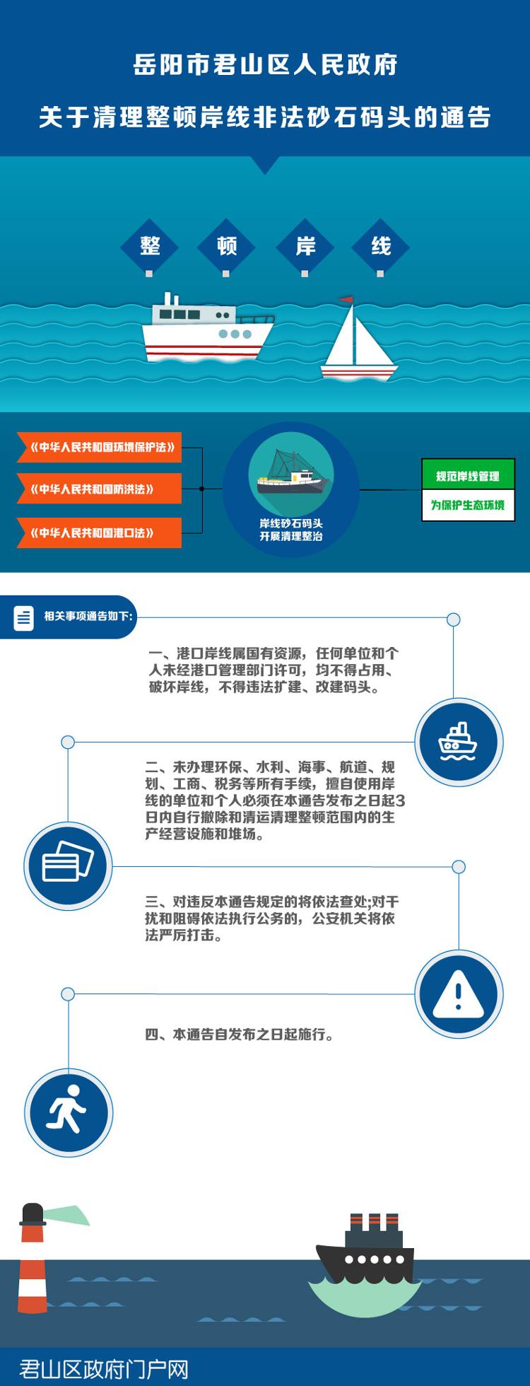 岳陽(yáng)市君山區(qū)人民政府關(guān)于清理整頓岸線非法砂石碼頭的通告