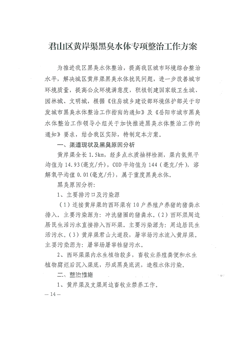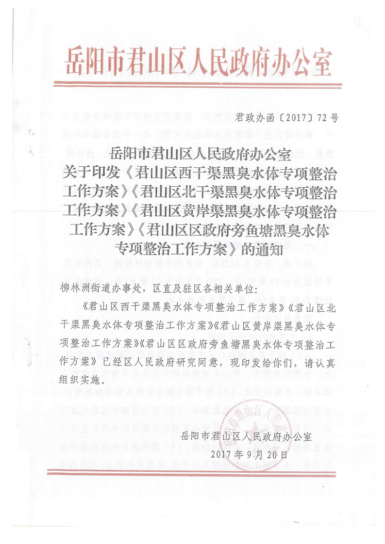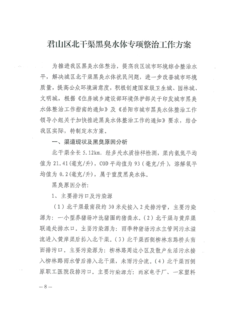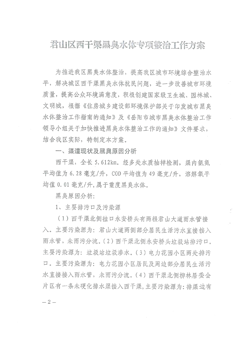 君山區(qū)黑臭水體整治進(jìn)展情況公示
