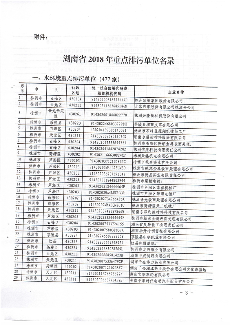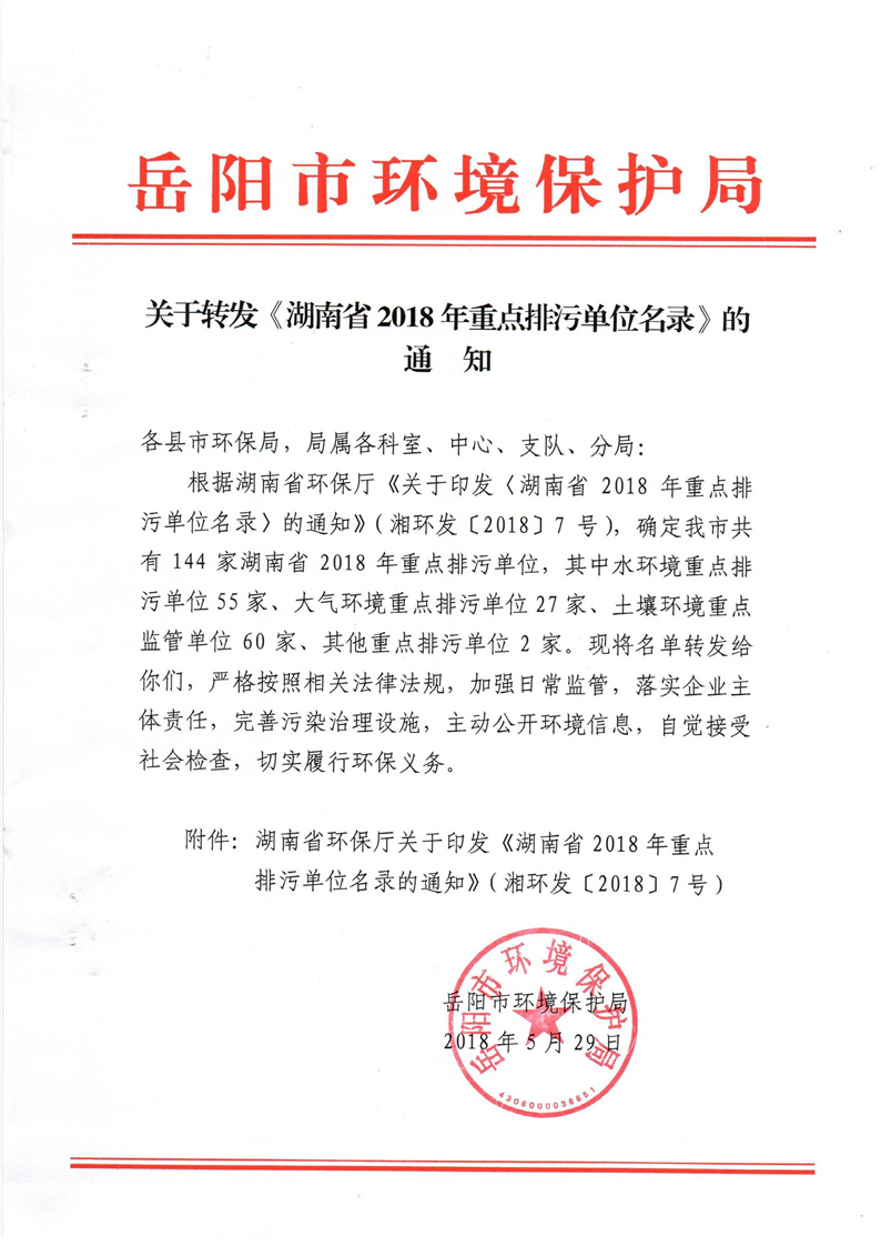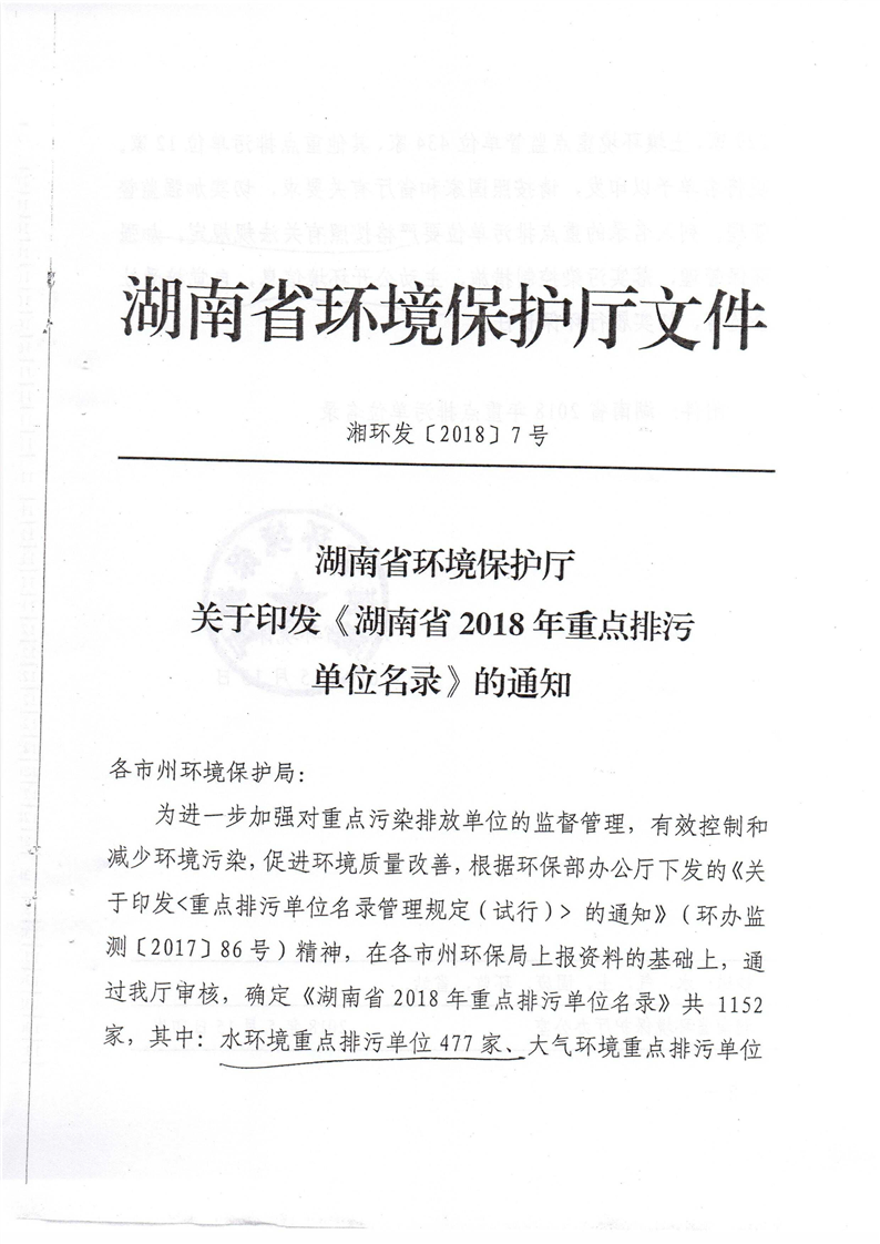 關(guān)于轉(zhuǎn)發(fā)《湖南省2018年重點(diǎn)排污單位名錄》的通知