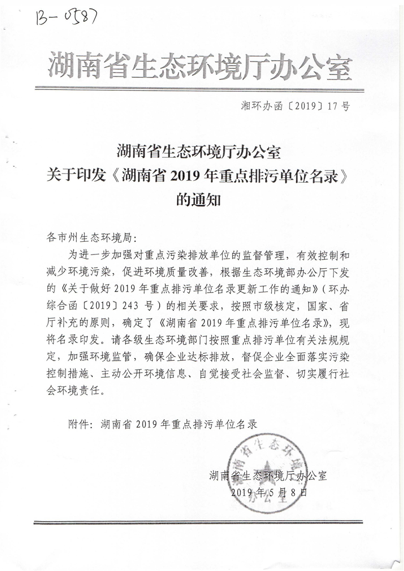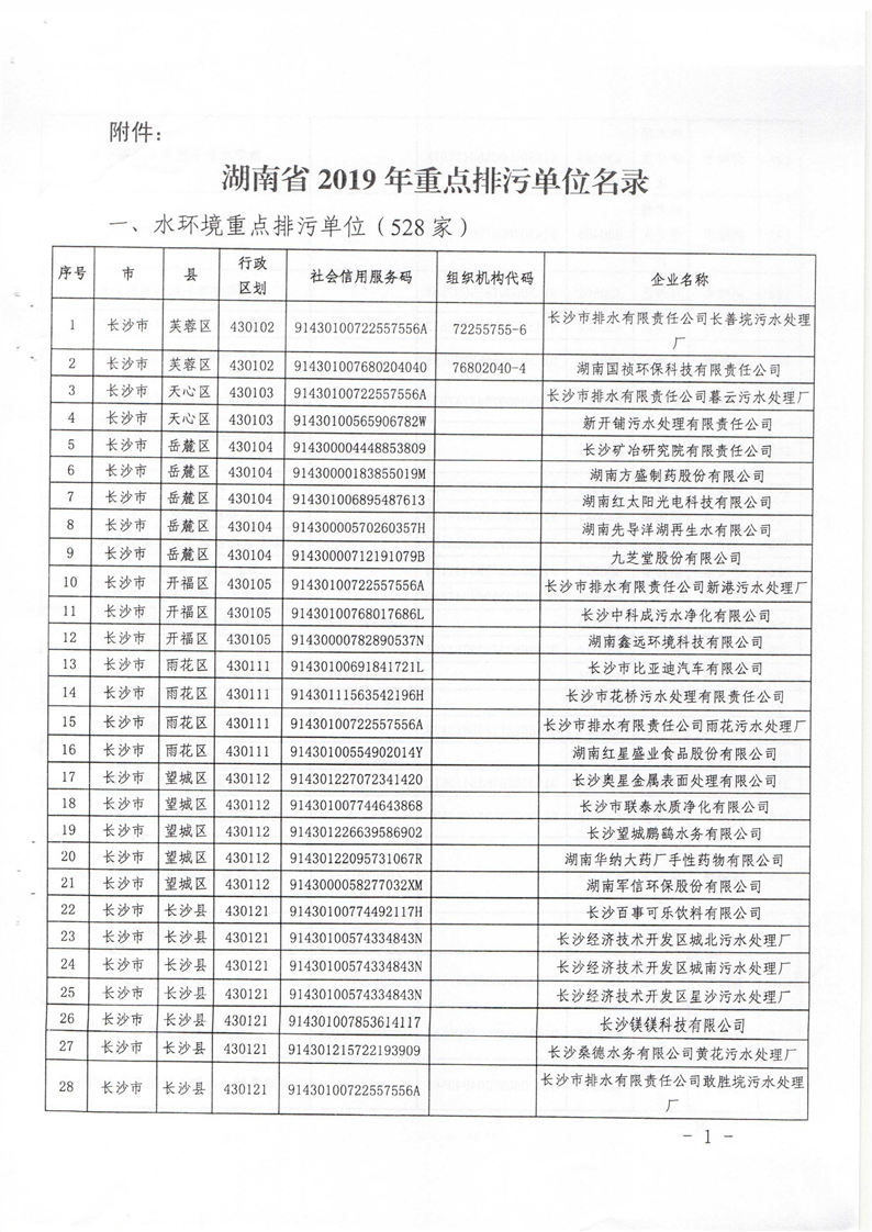 關(guān)于印發(fā)2019年重點排污單位名錄的通知