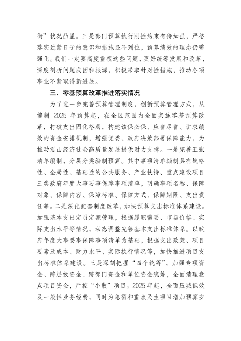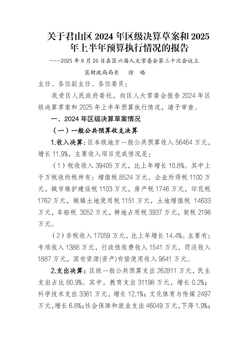 關(guān)于君山區(qū)2024年區(qū)級(jí)決算草案和2025年上半年預(yù)算執(zhí)行情況的報(bào)告