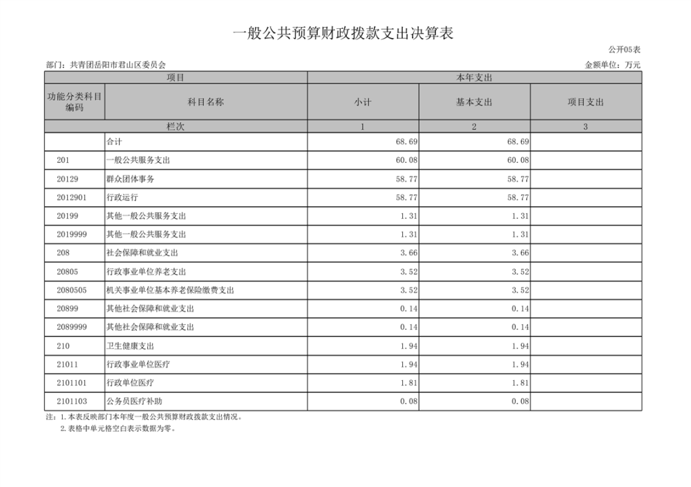 2024年度共青團(tuán)岳陽市君山區(qū)委員會(huì)部門決算公開
