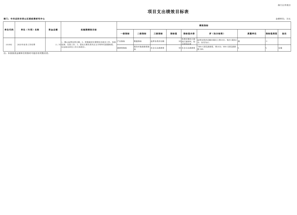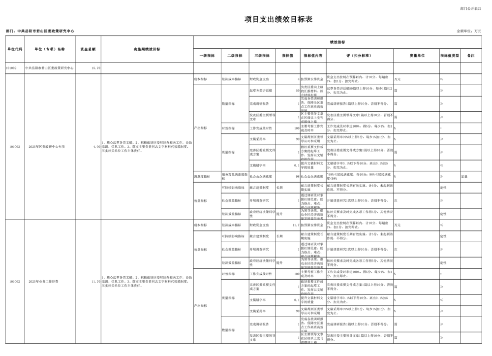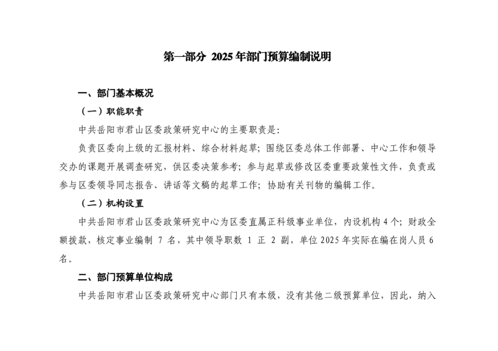 2025年中共岳陽市君山區(qū)委政策研究中心部門預(yù)算公開