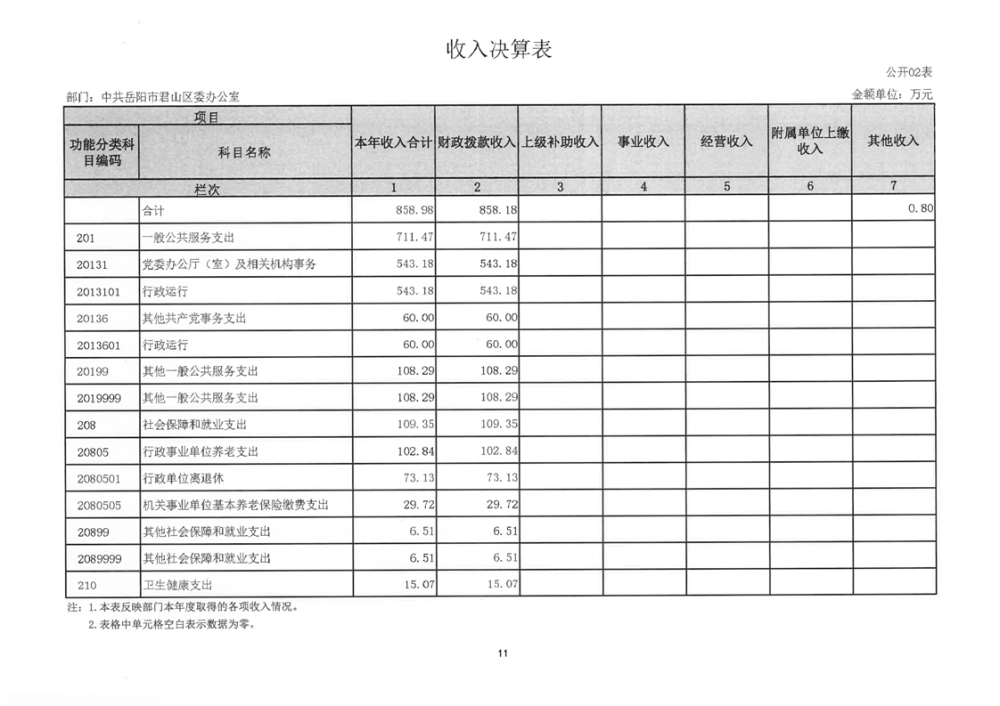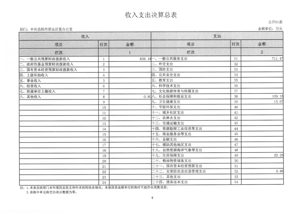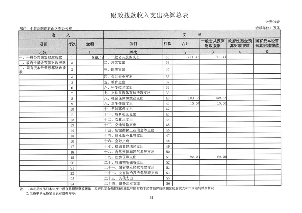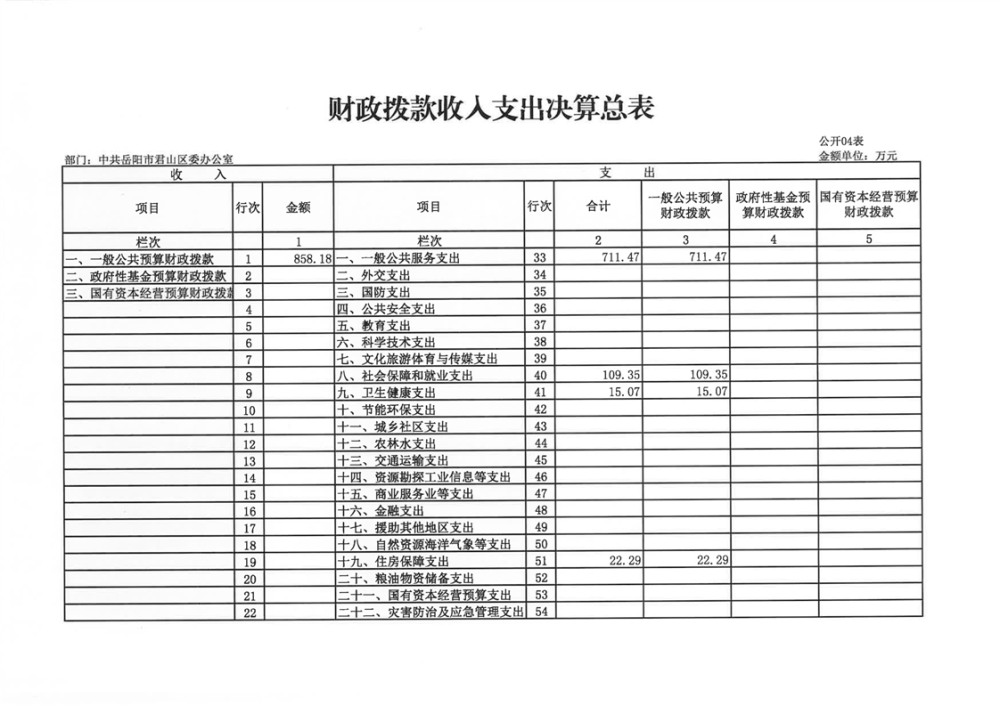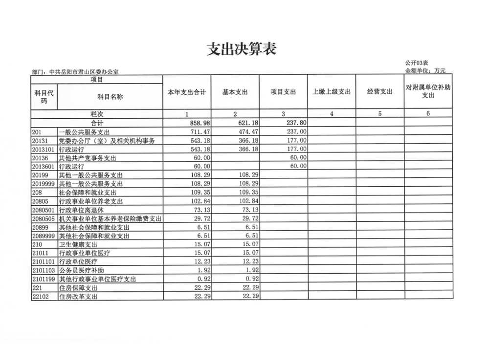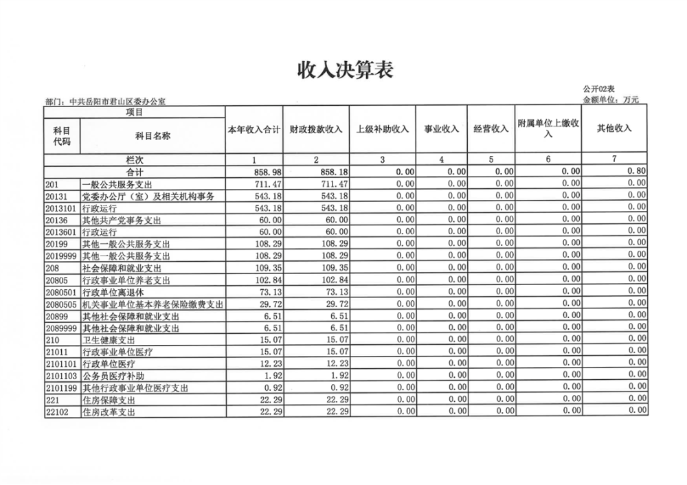 2024年度中共岳陽(yáng)市君山區(qū)委辦公室(本級(jí))部門(mén)決算公開(kāi)