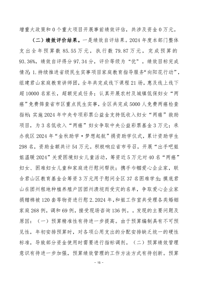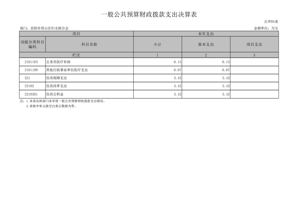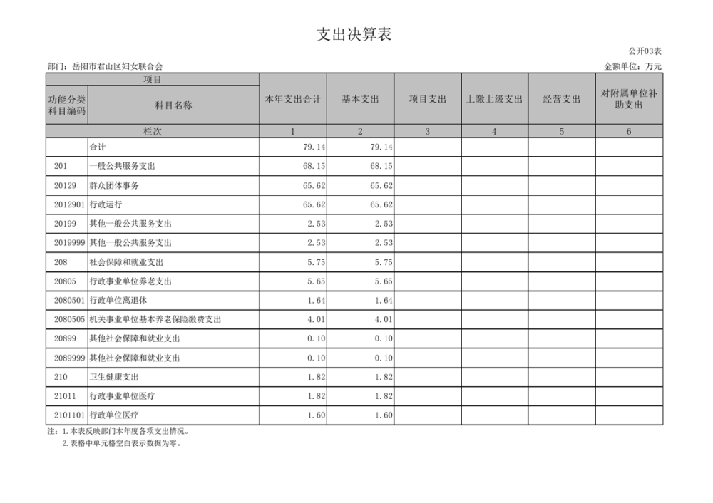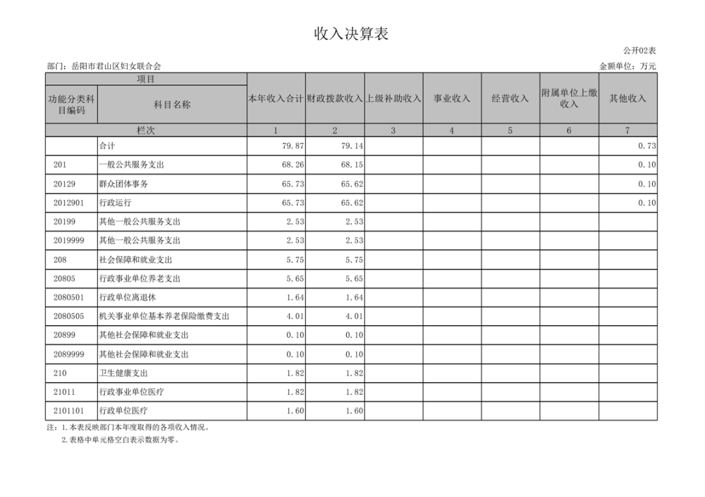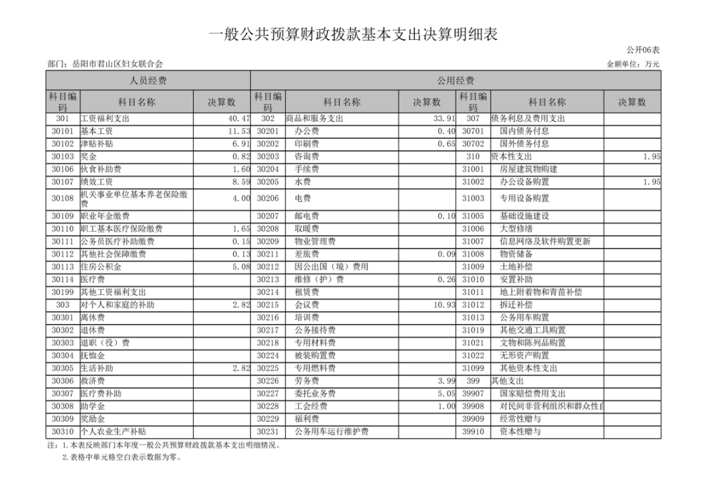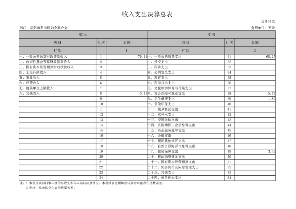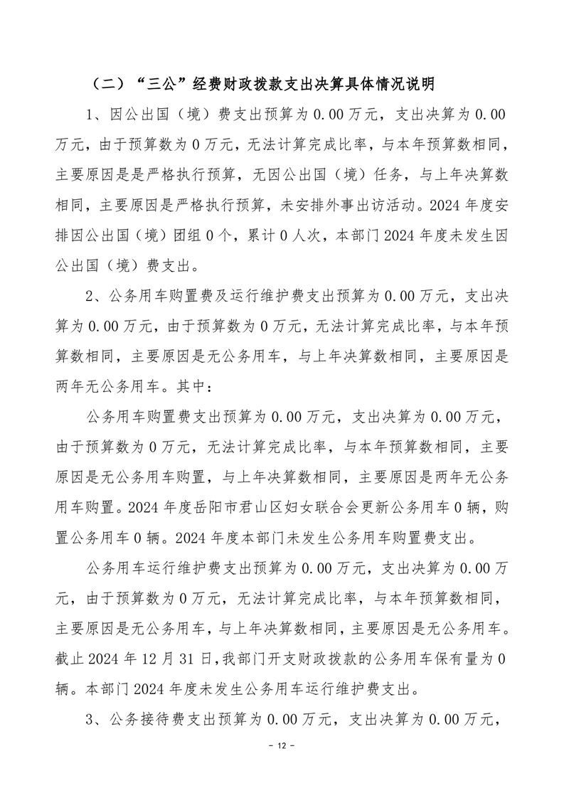 2024年度岳陽市君山區(qū)婦女聯(lián)合會部門決算公開