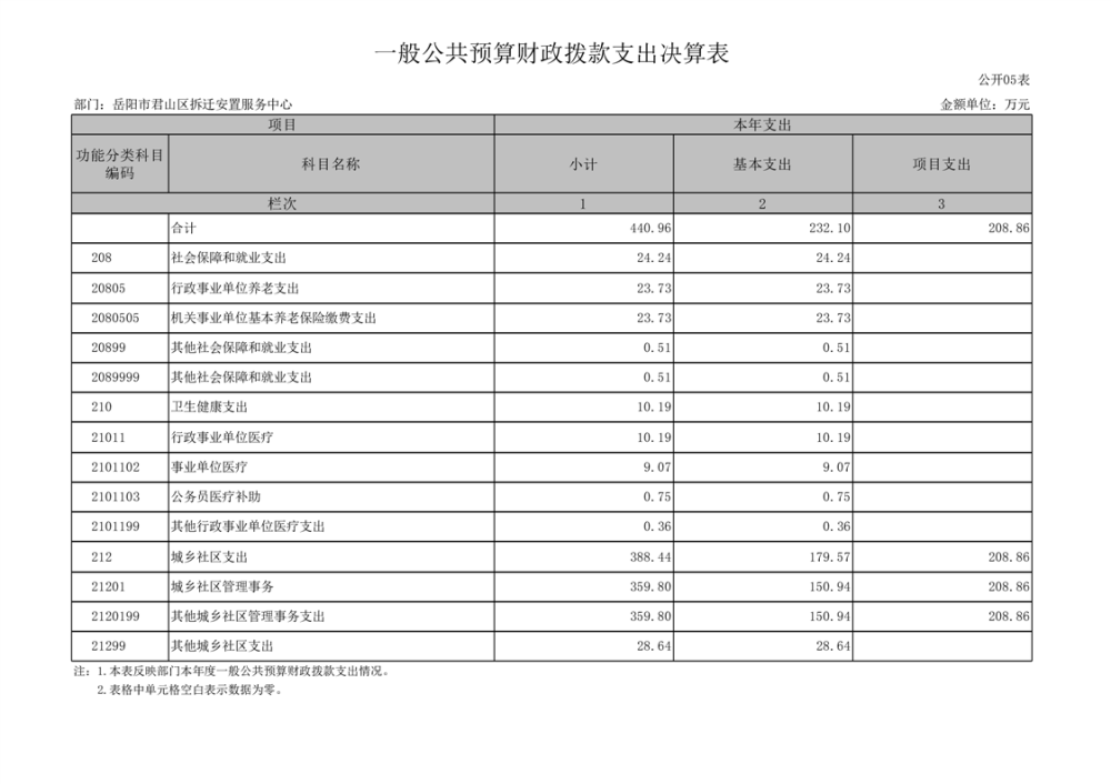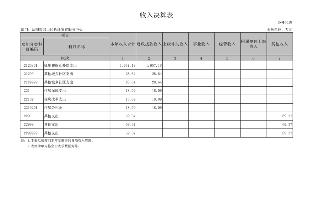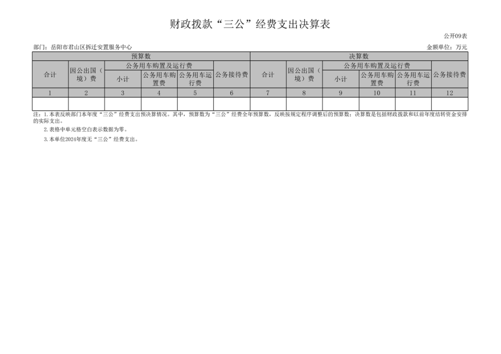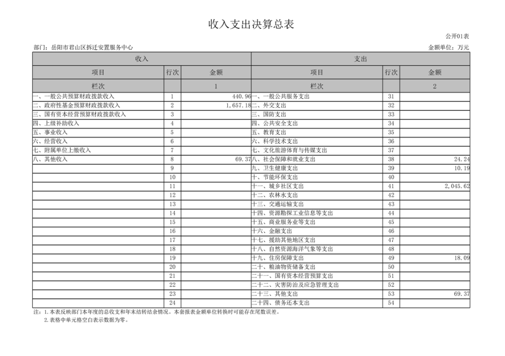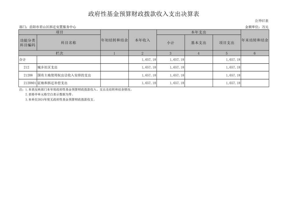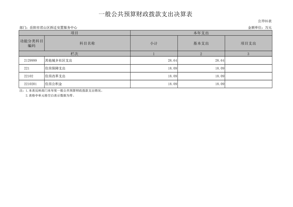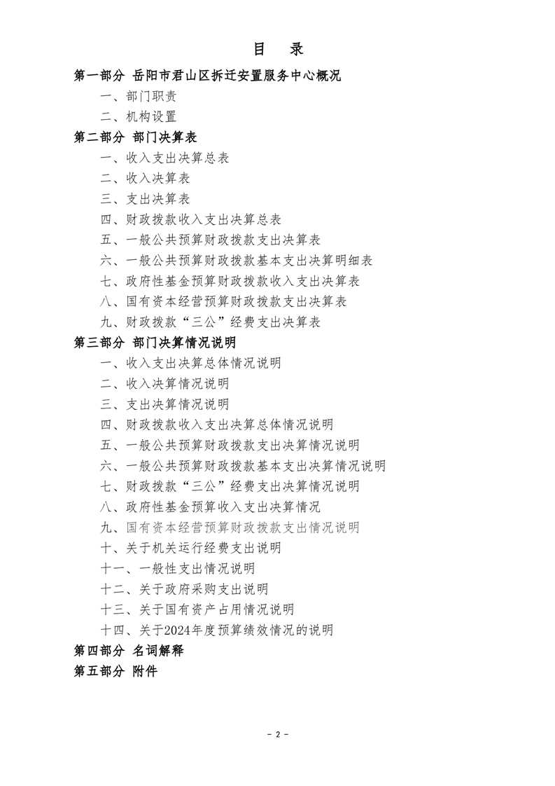 2024年度岳陽市君山區(qū)拆遷安置服務(wù)中心部門決算公開