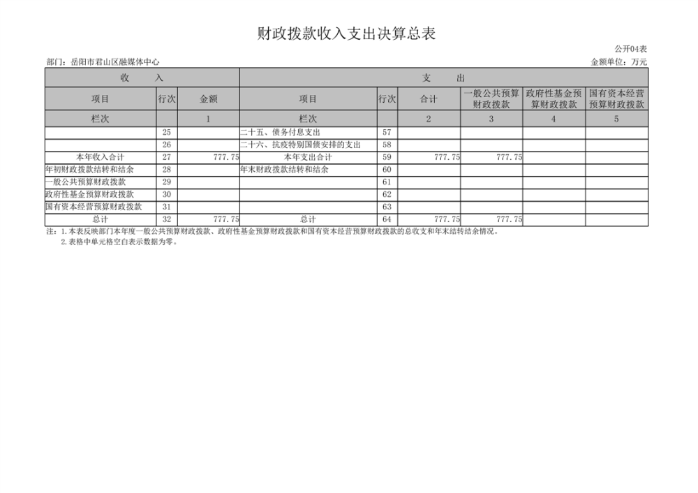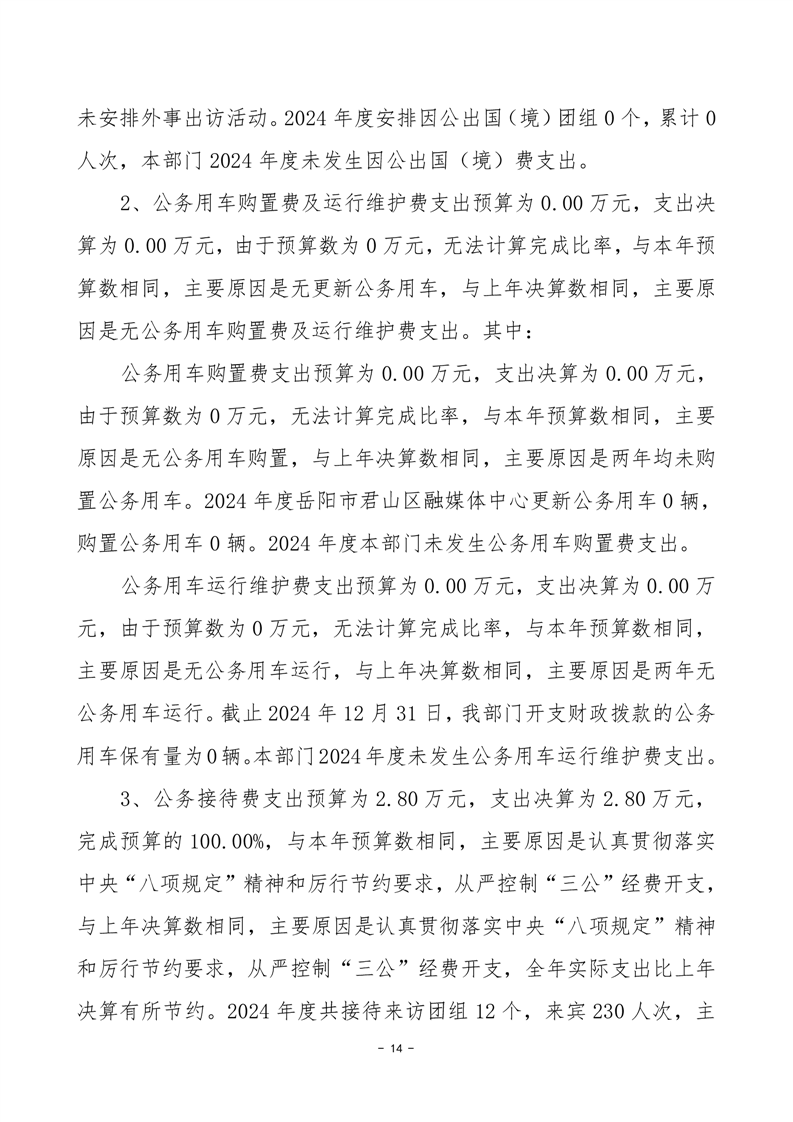 2024年度岳陽市君山區(qū)融媒體中心部門決算公開