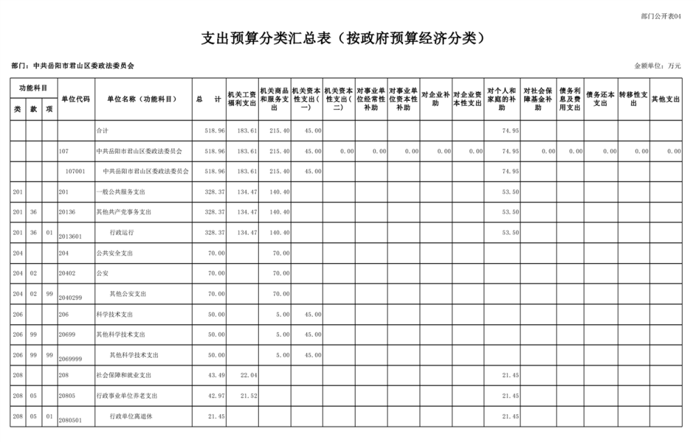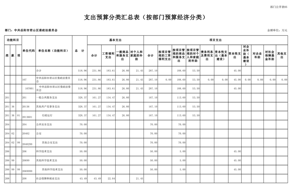 2025年中共岳陽市君山區(qū)委政法委員會部門預(yù)算公開