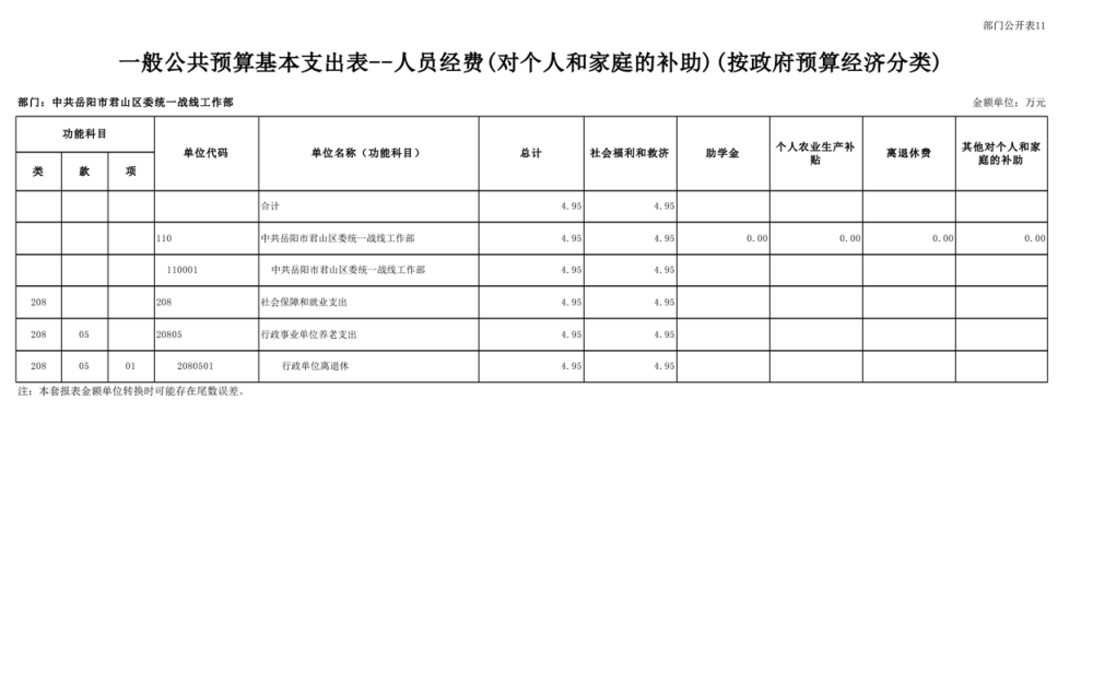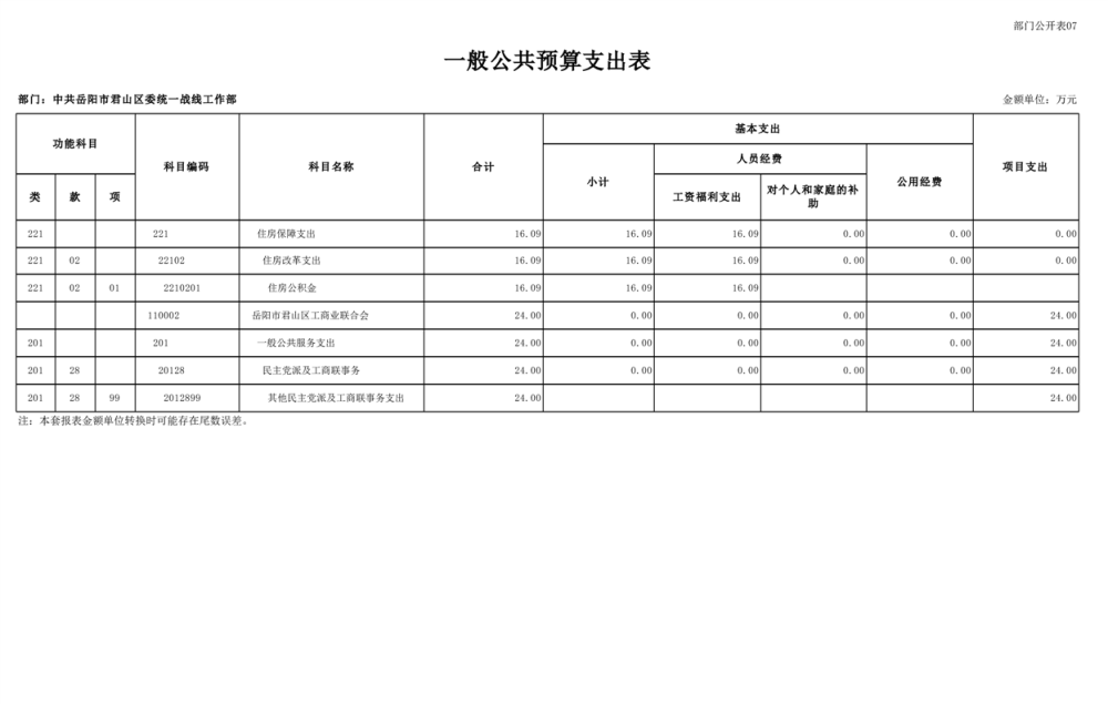 2025年中共岳陽(yáng)市君山區(qū)委統(tǒng)一戰(zhàn)線工作部(部門)預(yù)算公開