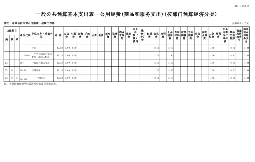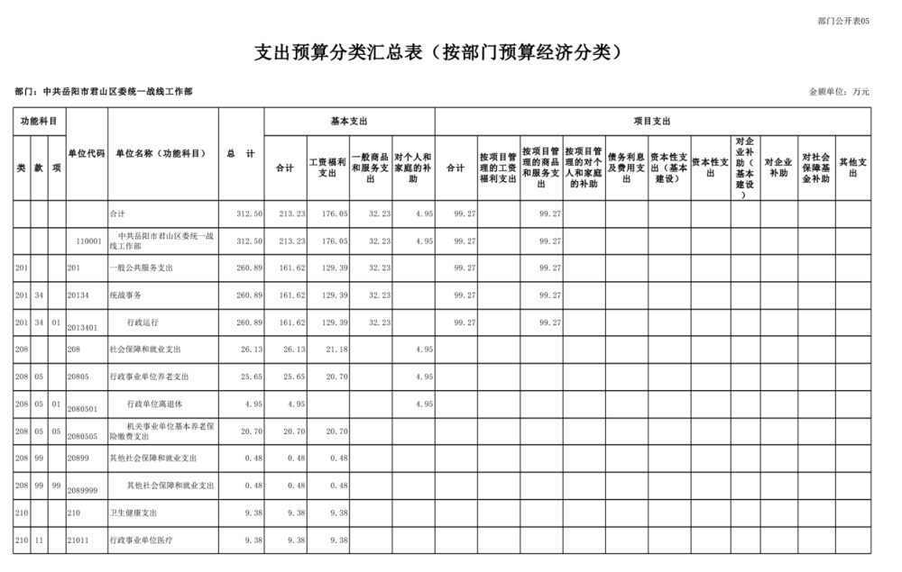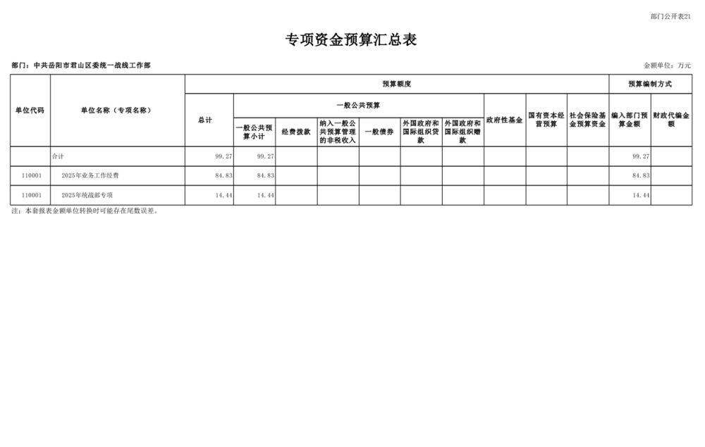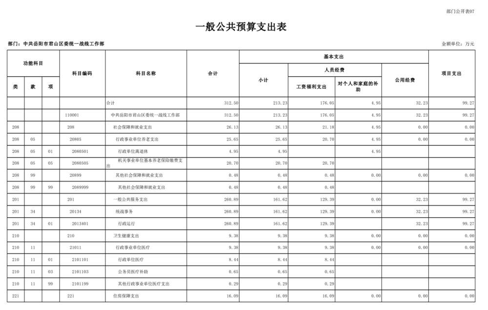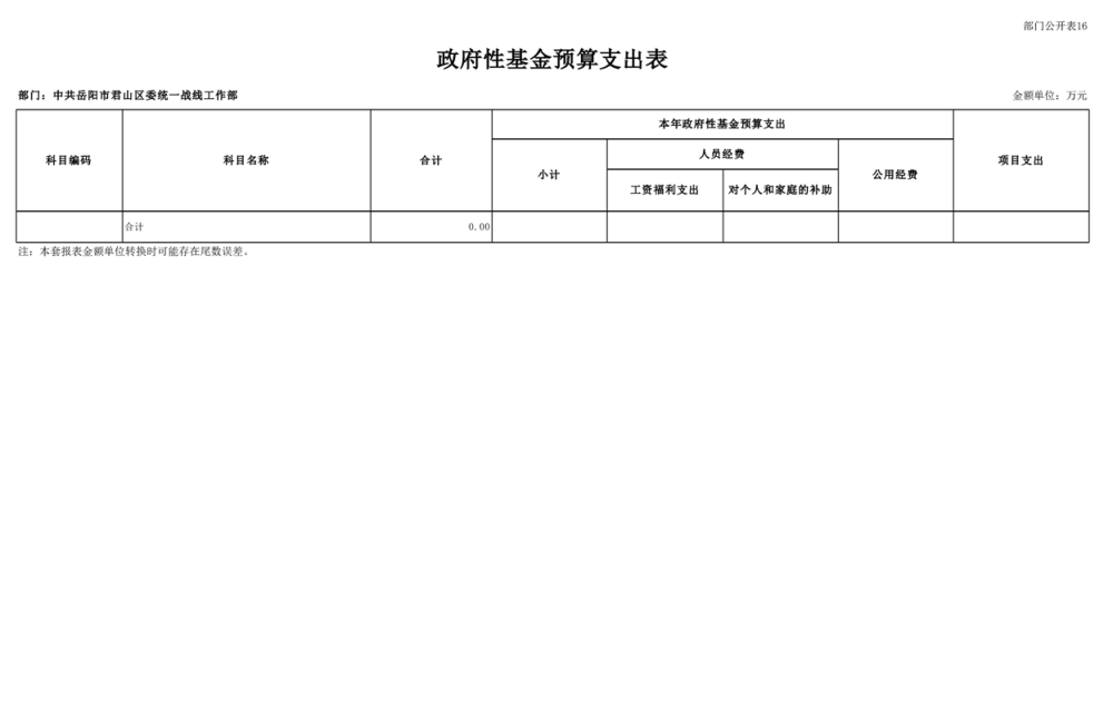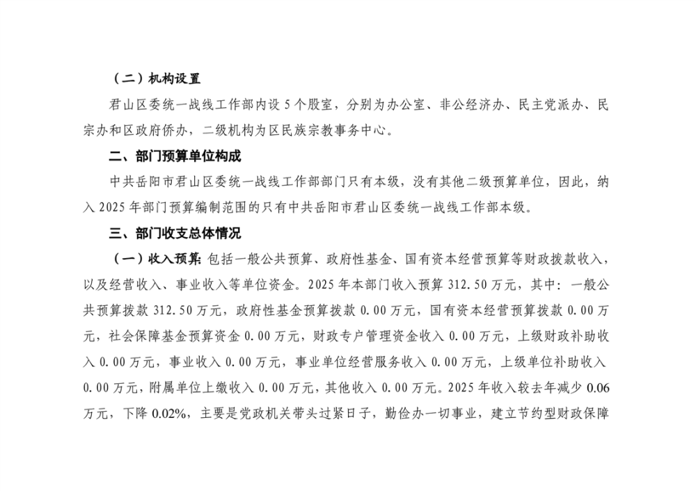 2025年中共岳陽(yáng)市君山區(qū)委統(tǒng)一戰(zhàn)線(xiàn)工作部(本級(jí))部門(mén)預(yù)算公開(kāi)