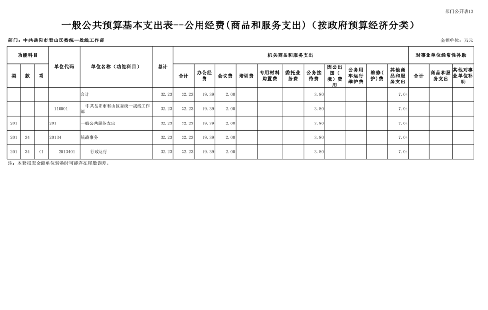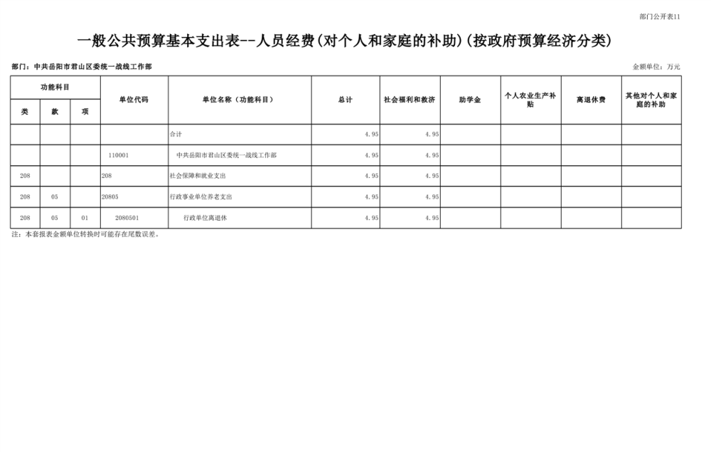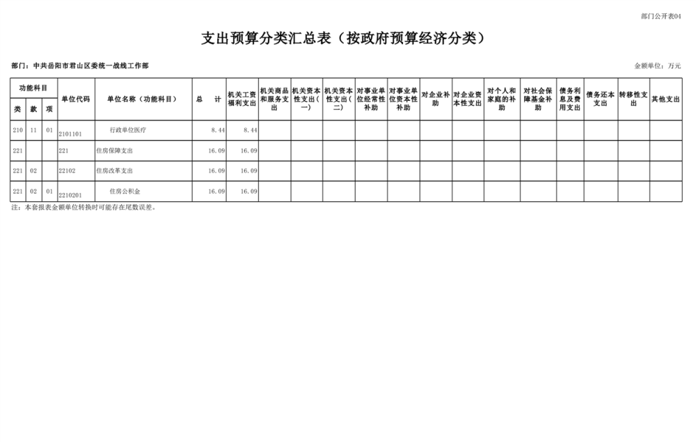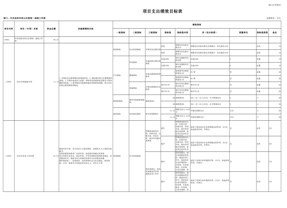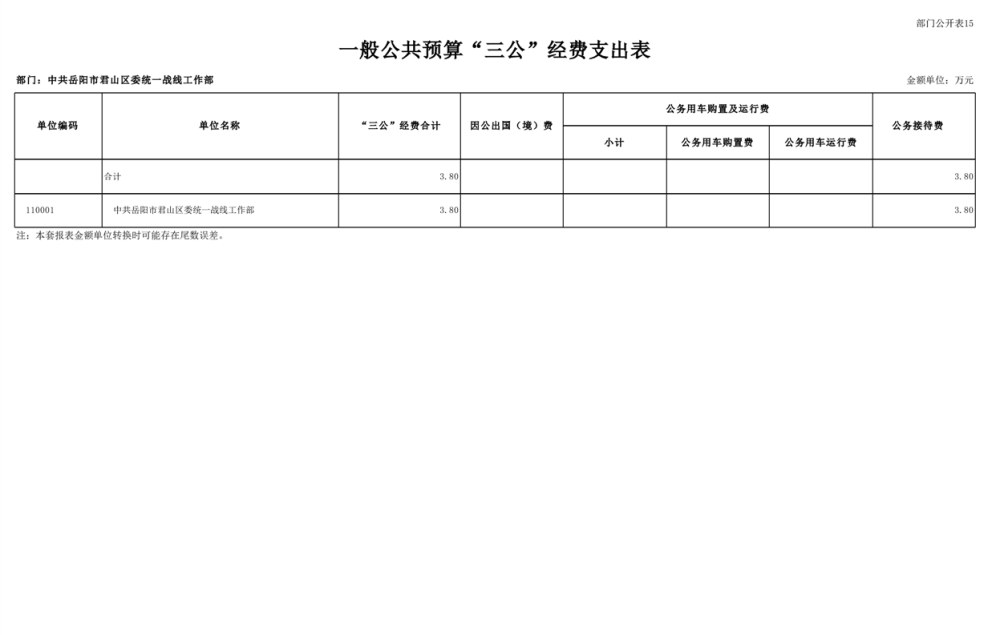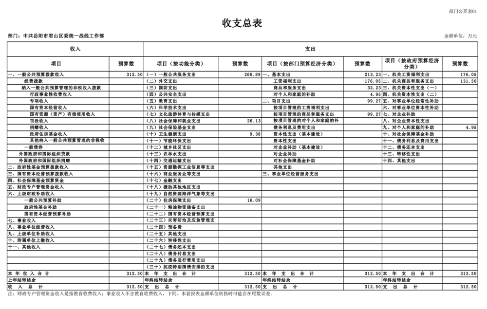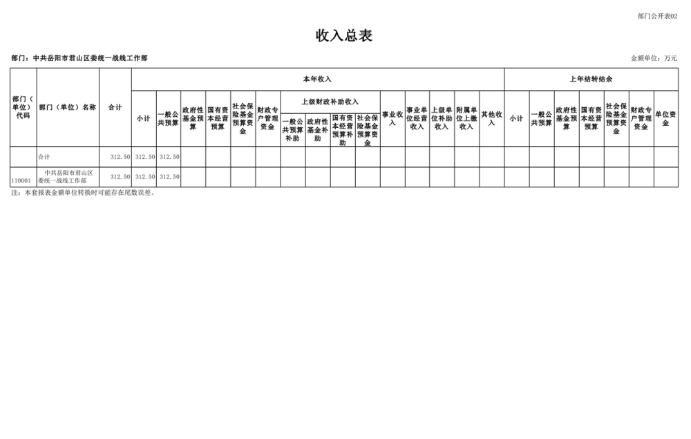 2025年中共岳陽(yáng)市君山區(qū)委統(tǒng)一戰(zhàn)線(xiàn)工作部(本級(jí))部門(mén)預(yù)算公開(kāi)