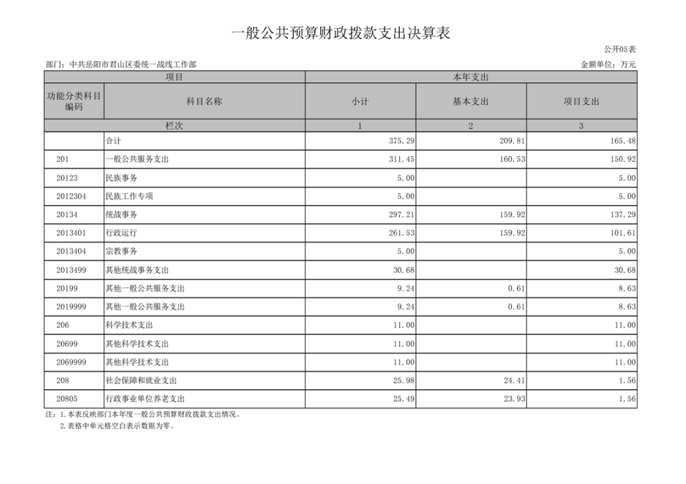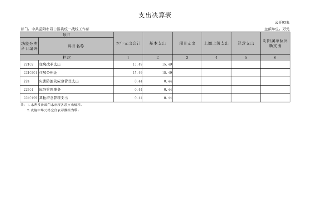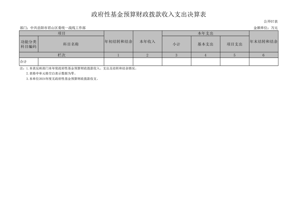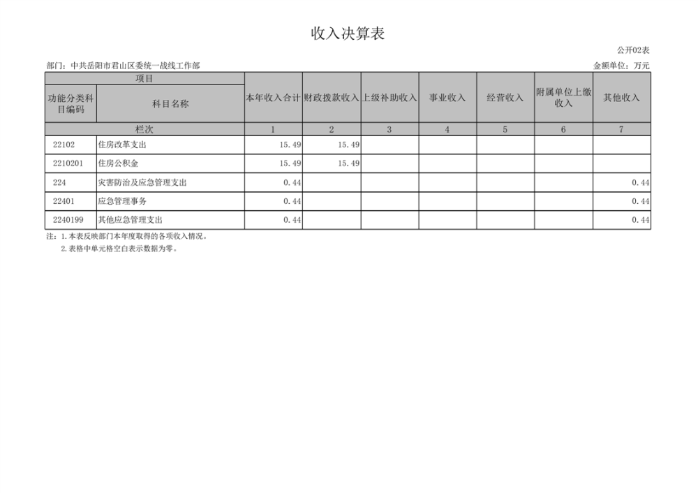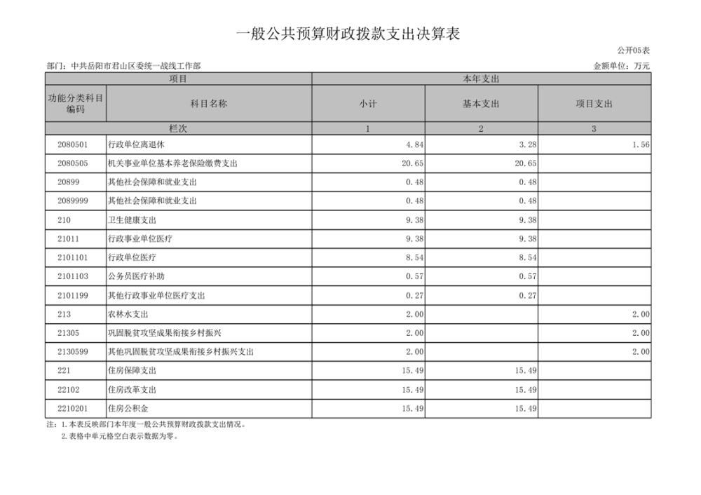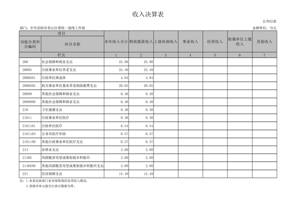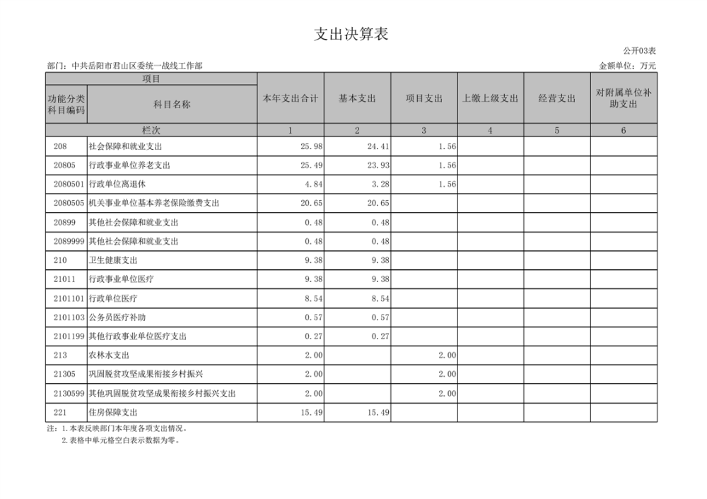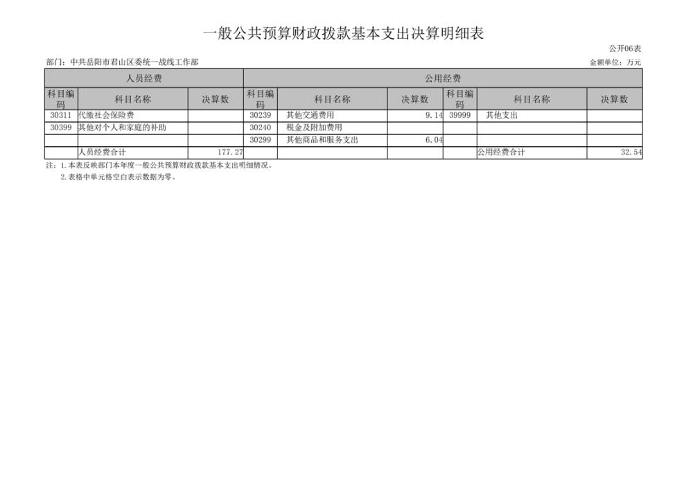 2024年度中共岳陽市君山區(qū)委統(tǒng)一戰(zhàn)線工作部部門決算公開