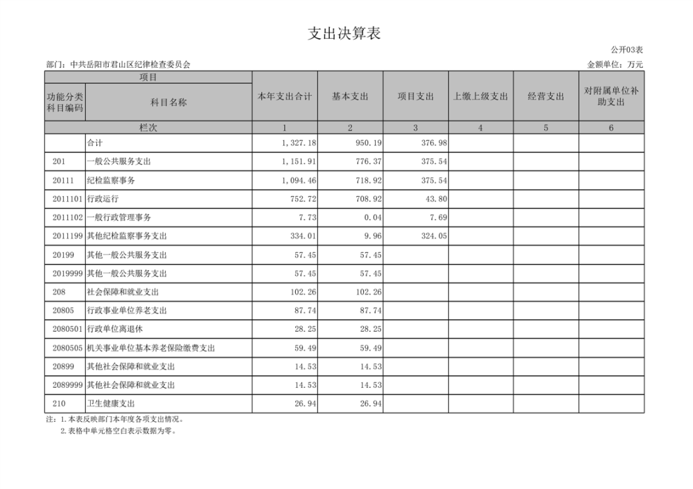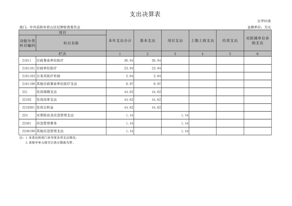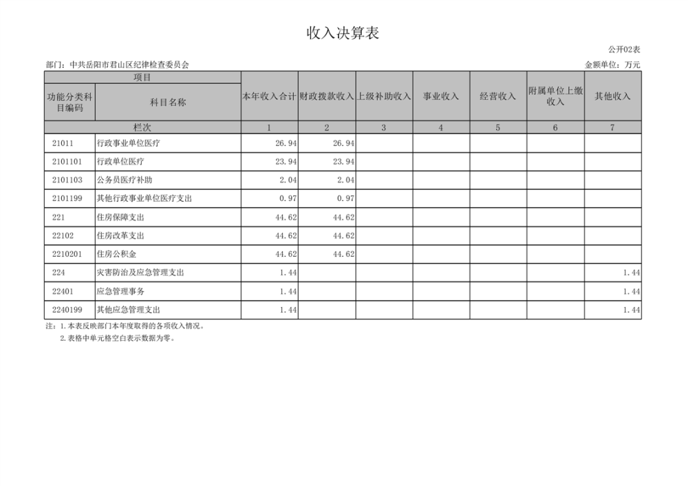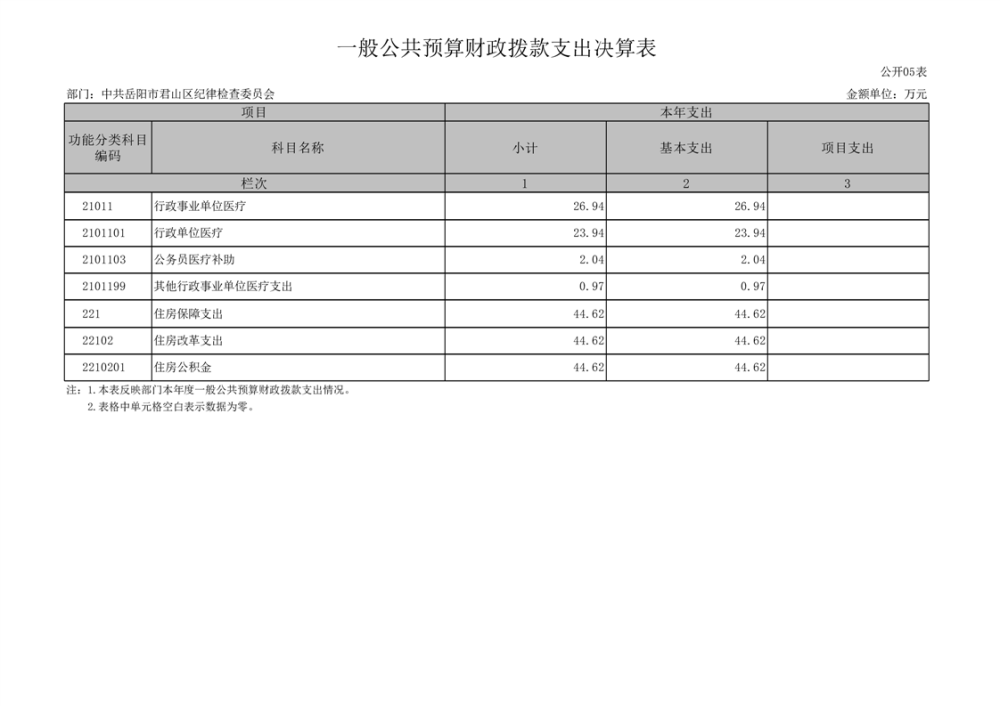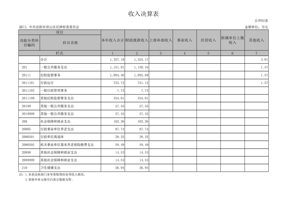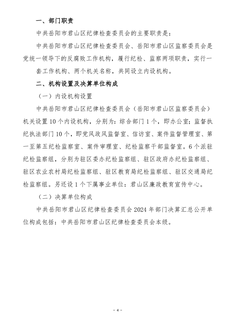 2024年度中共岳陽(yáng)市君山區(qū)紀(jì)律檢查委員會(huì)部門決算公開(kāi)