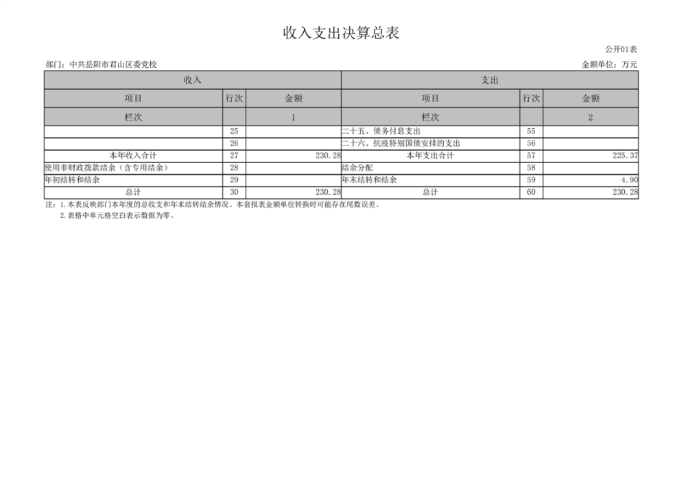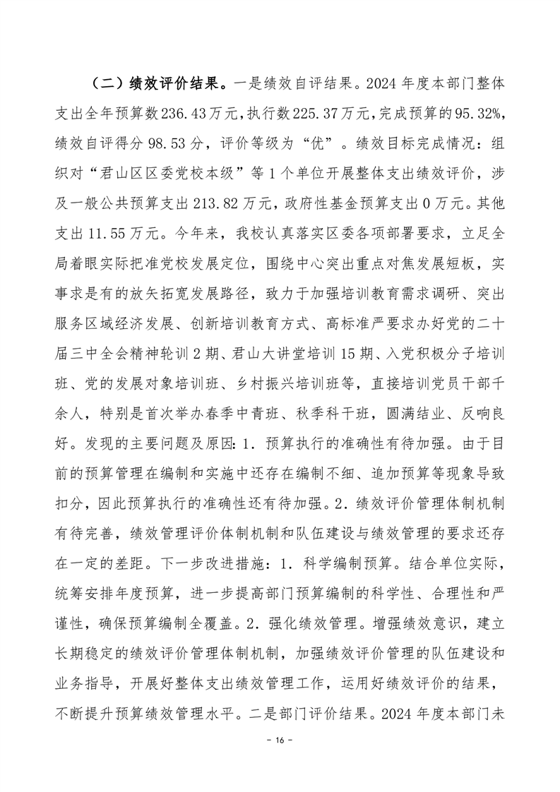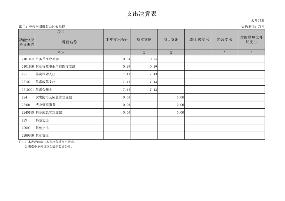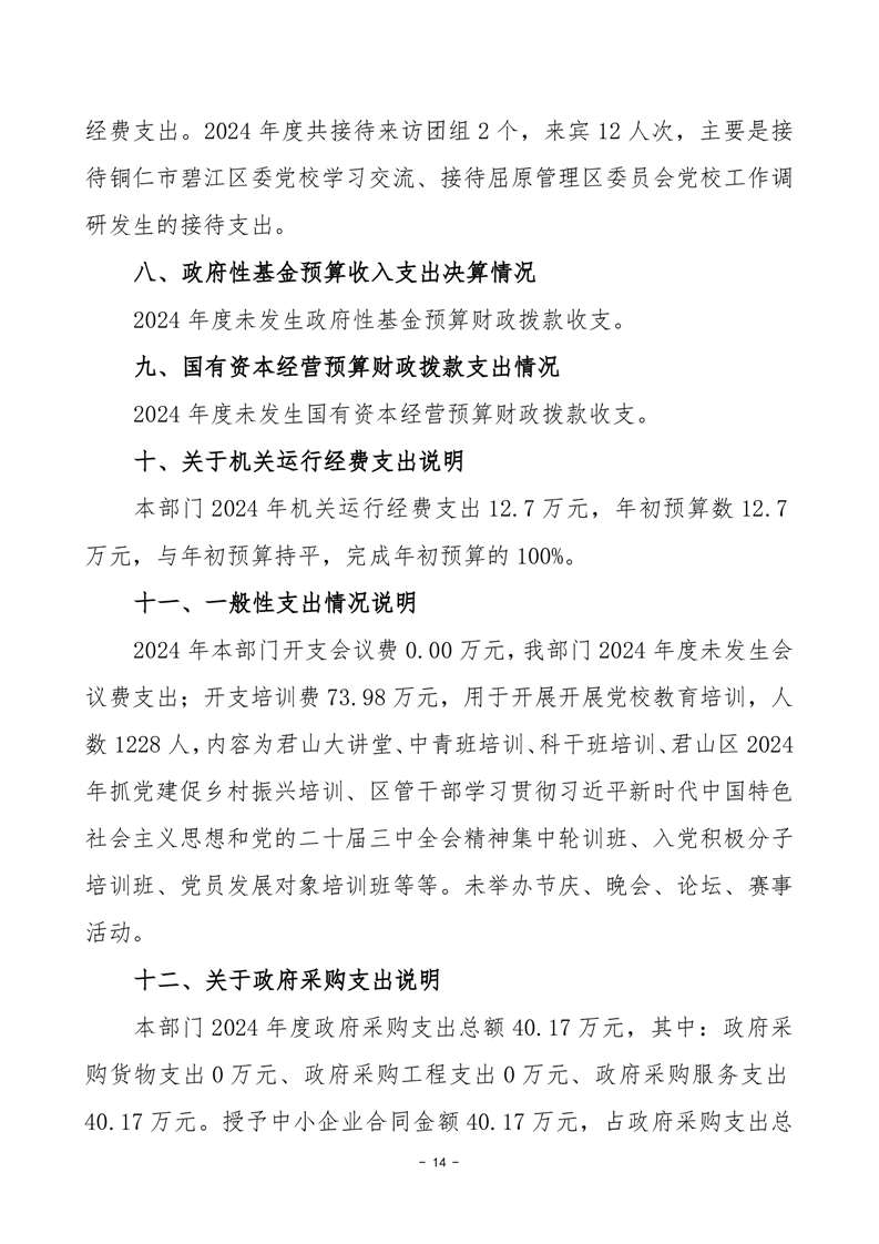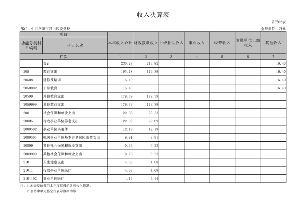 2024年度中共岳陽市君山區(qū)委黨校部門決算公開
