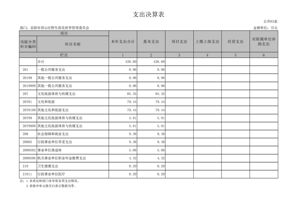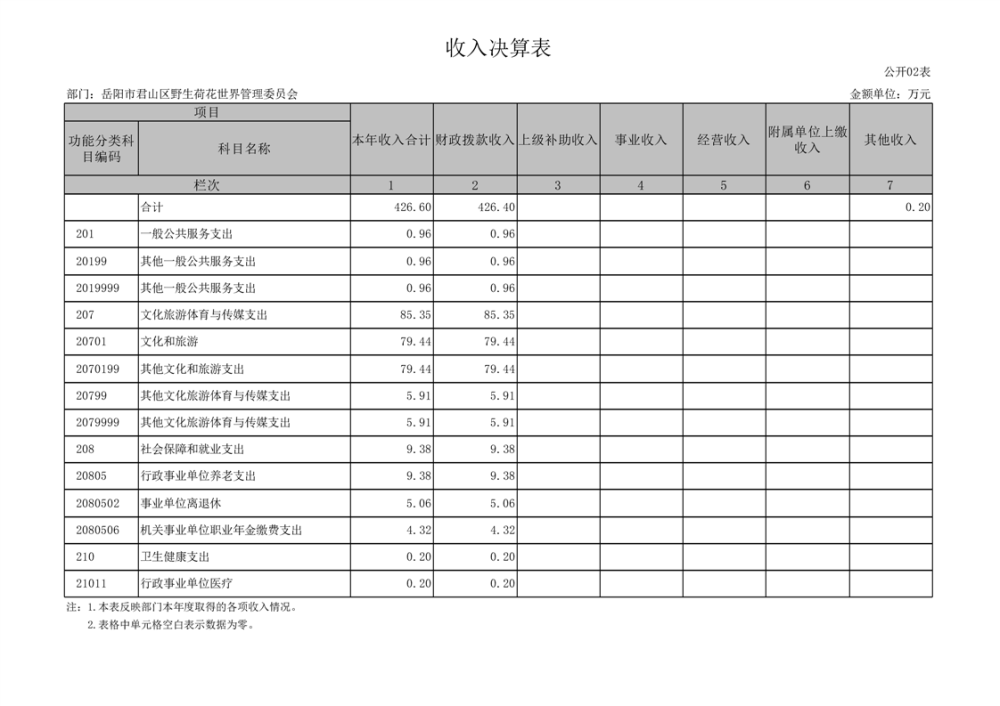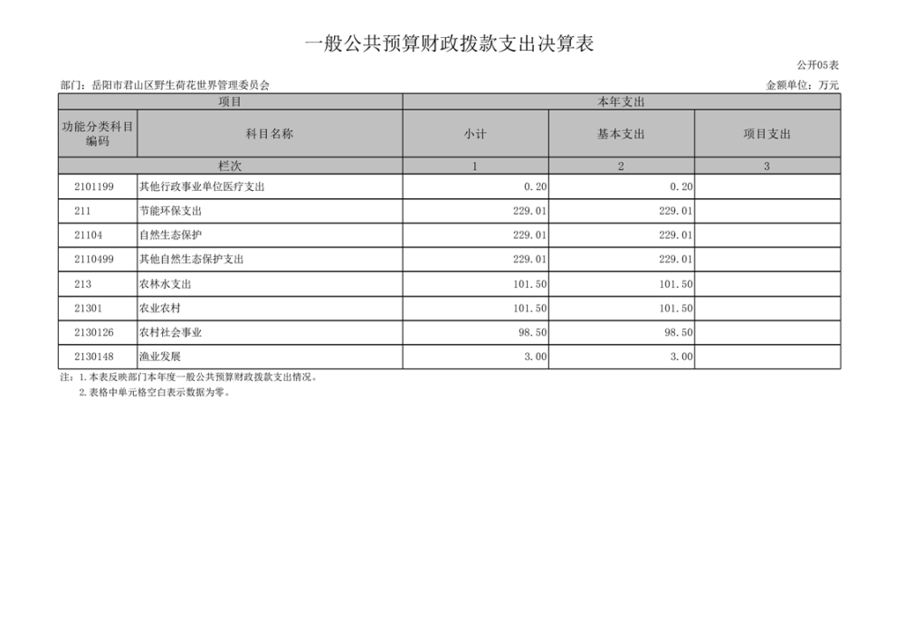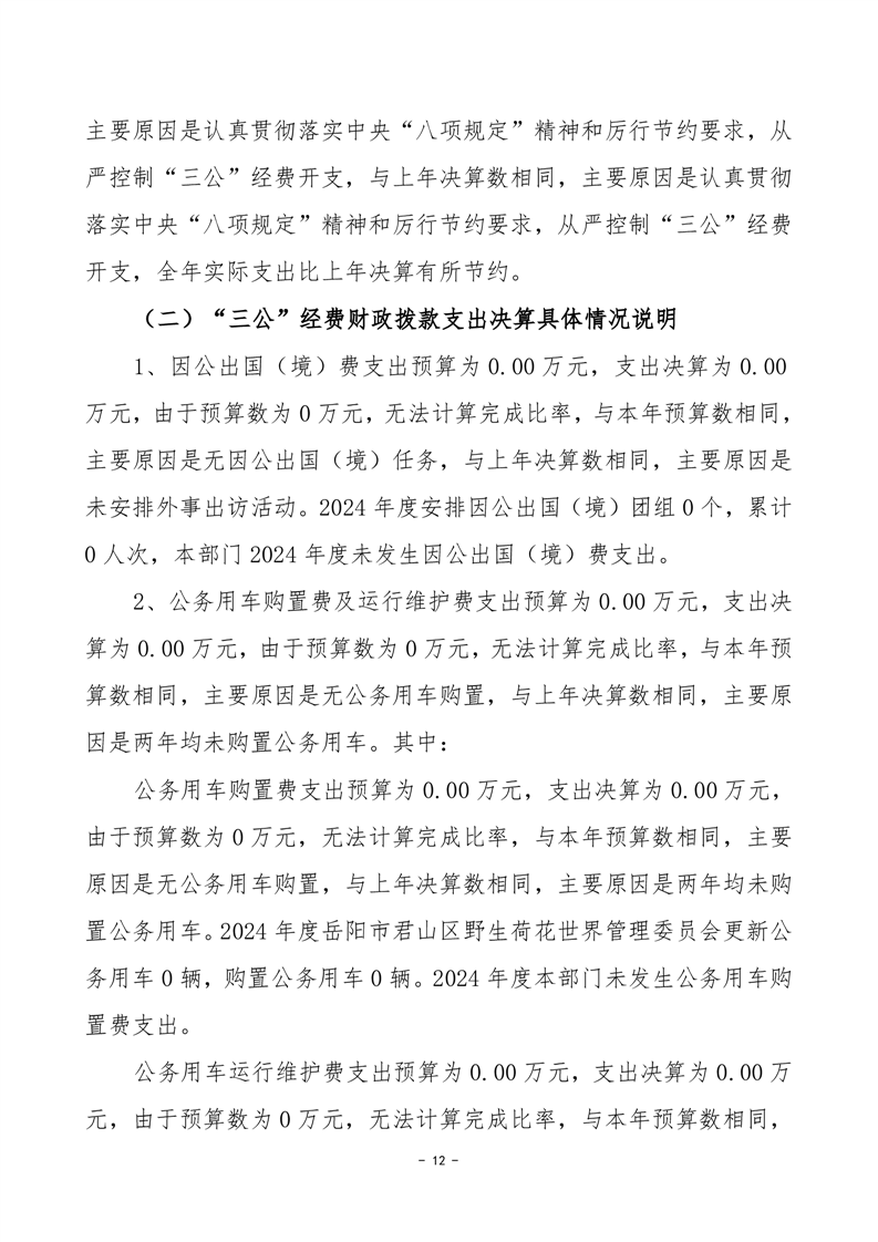 2024年度岳陽市君山區(qū)野生荷花世界管理委員會部門決算公開