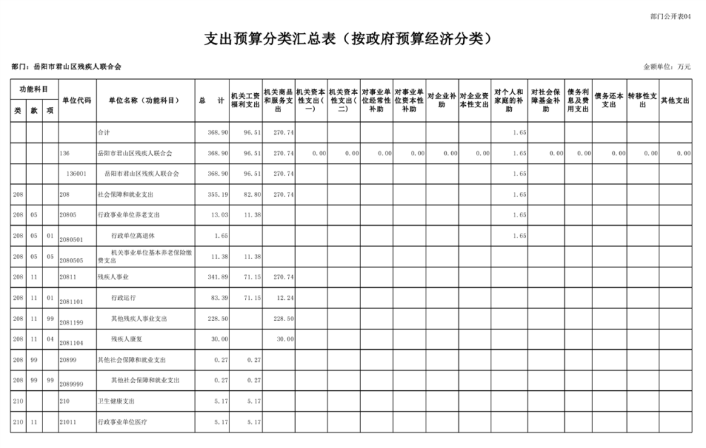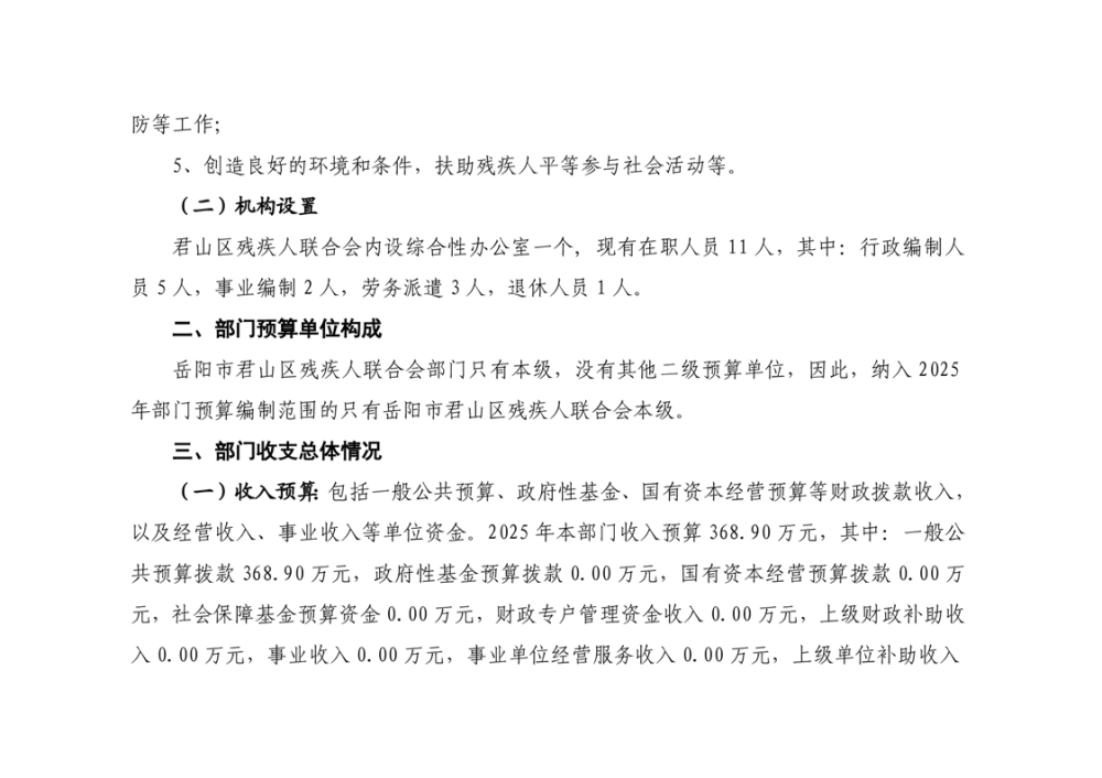 2025年岳陽市君山區(qū)殘疾人聯(lián)合會部門預(yù)算公開