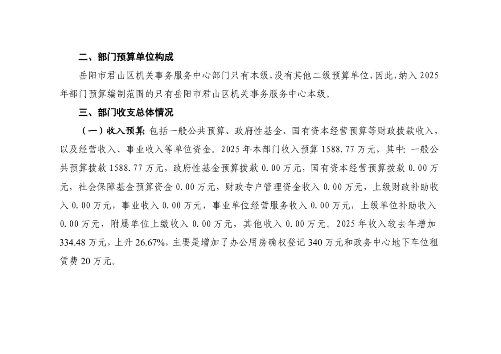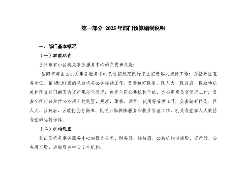 2025年岳陽市君山區(qū)機關事務服務中心部門預算公開