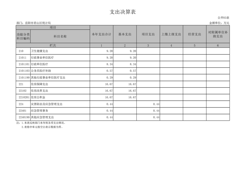 2024年度岳陽市君山區(qū)統(tǒng)計(jì)局部門決算公開