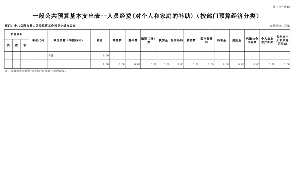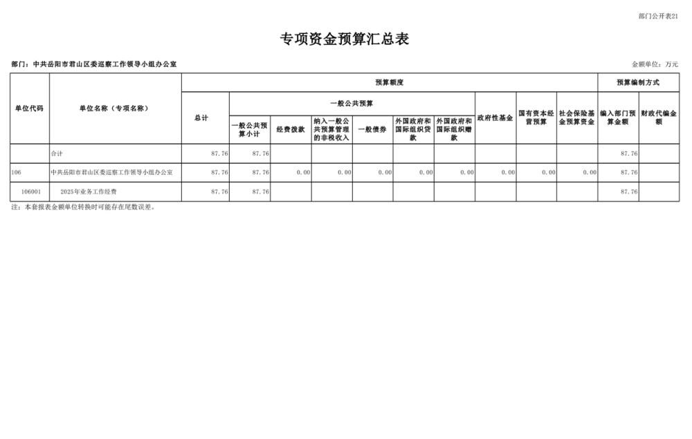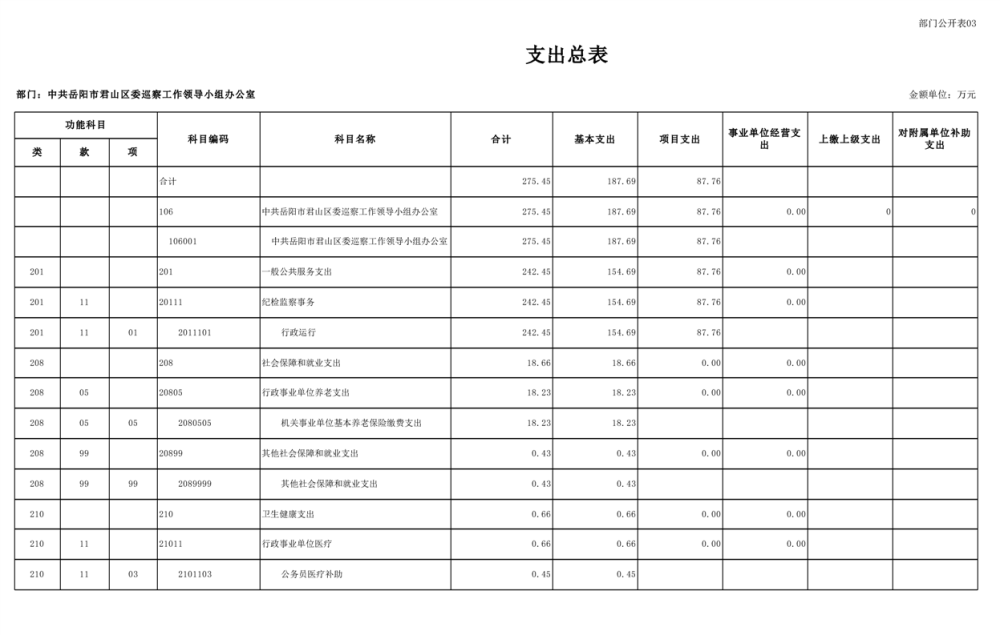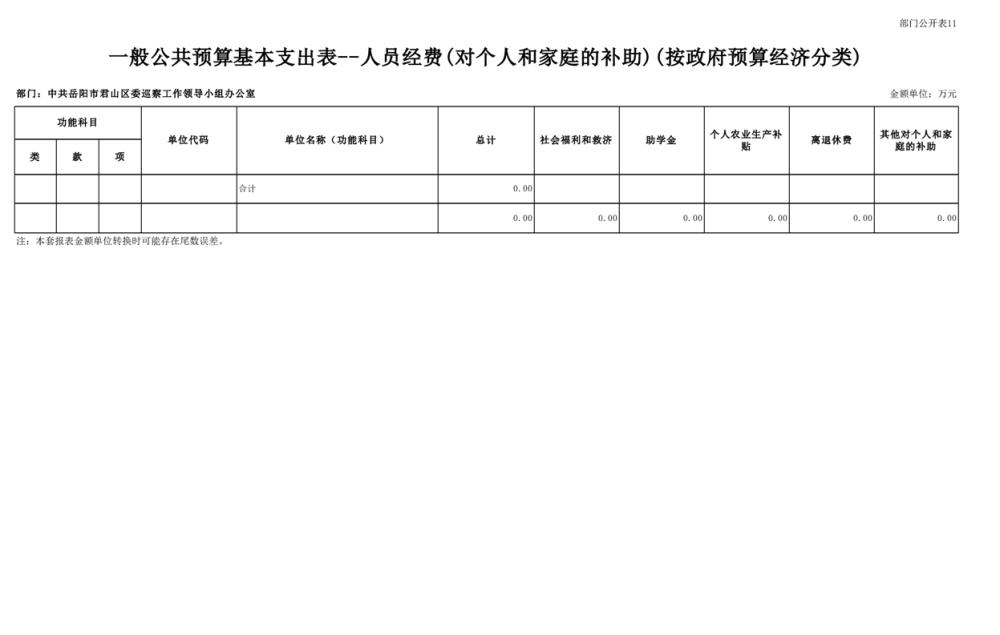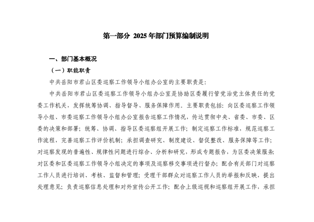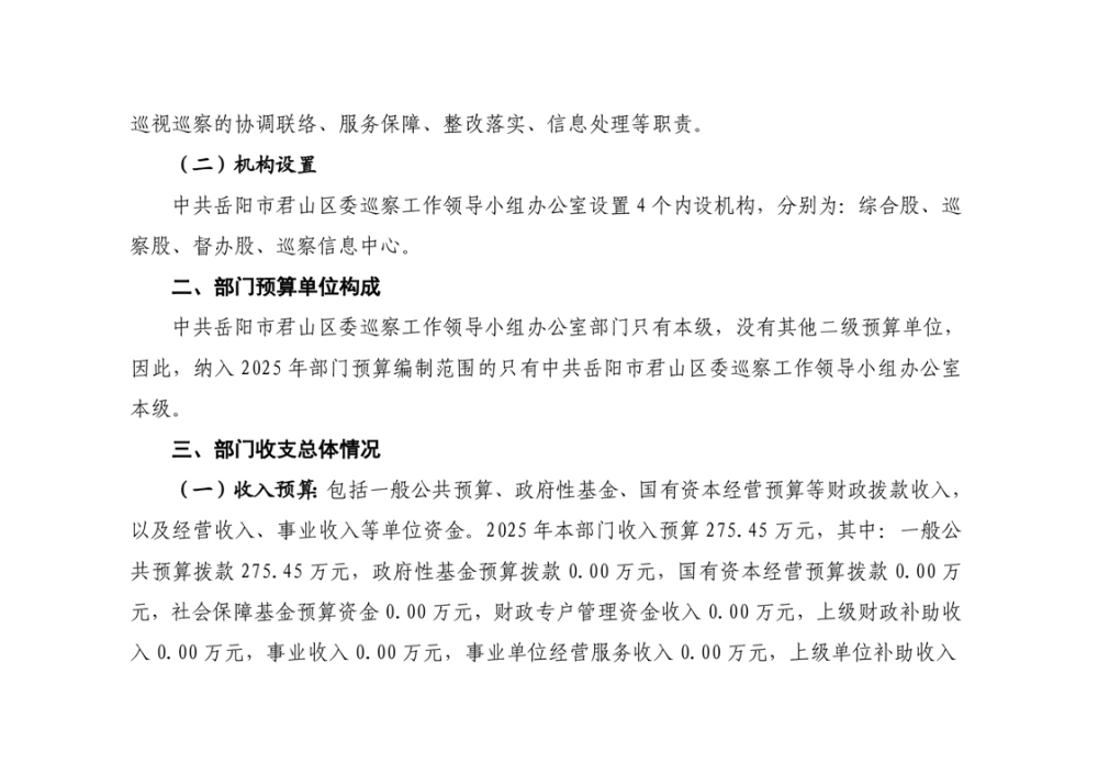 2025年中共岳陽市君山區(qū)委巡察工作領(lǐng)導(dǎo)小組辦公室部門預(yù)算公開