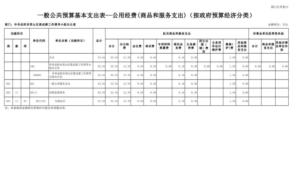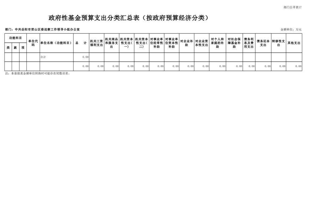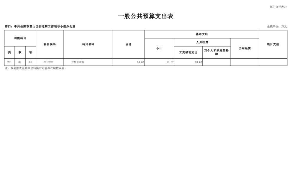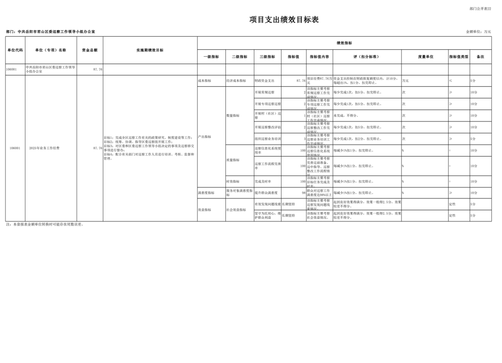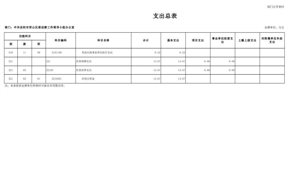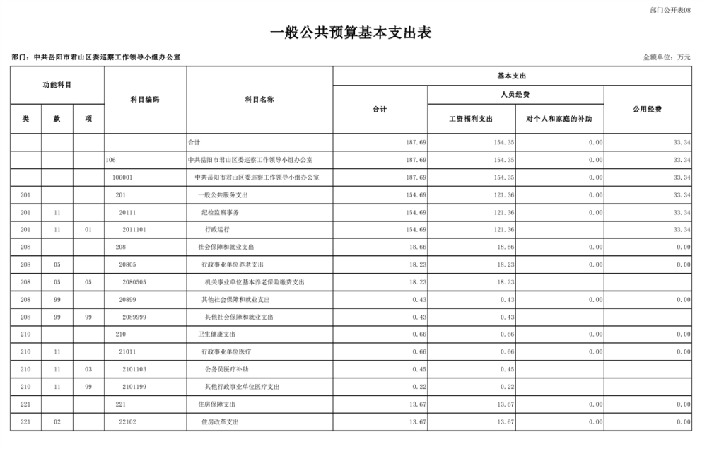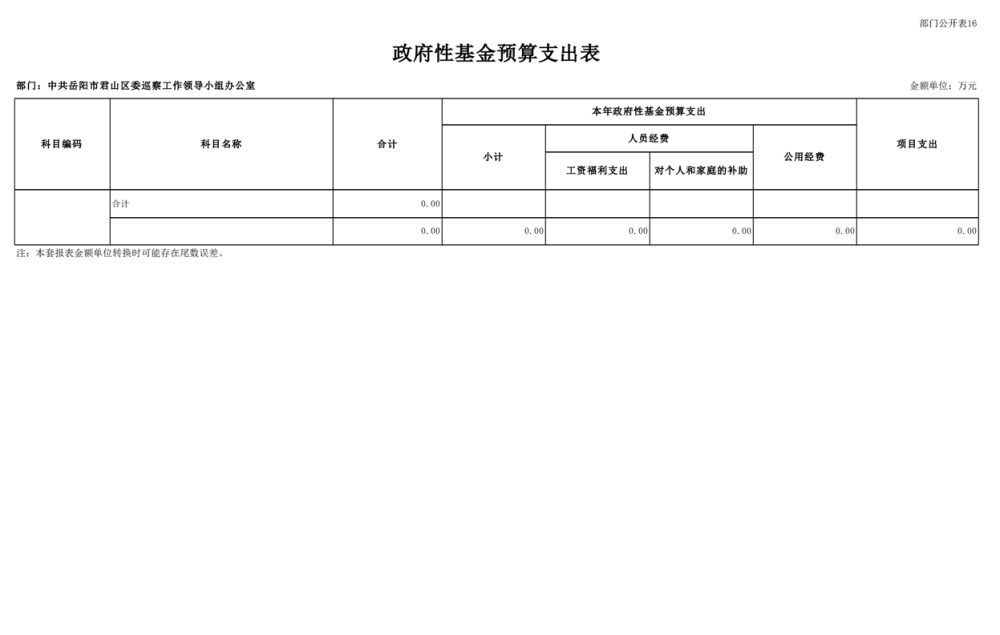 2025年中共岳陽市君山區(qū)委巡察工作領(lǐng)導(dǎo)小組辦公室部門預(yù)算公開
