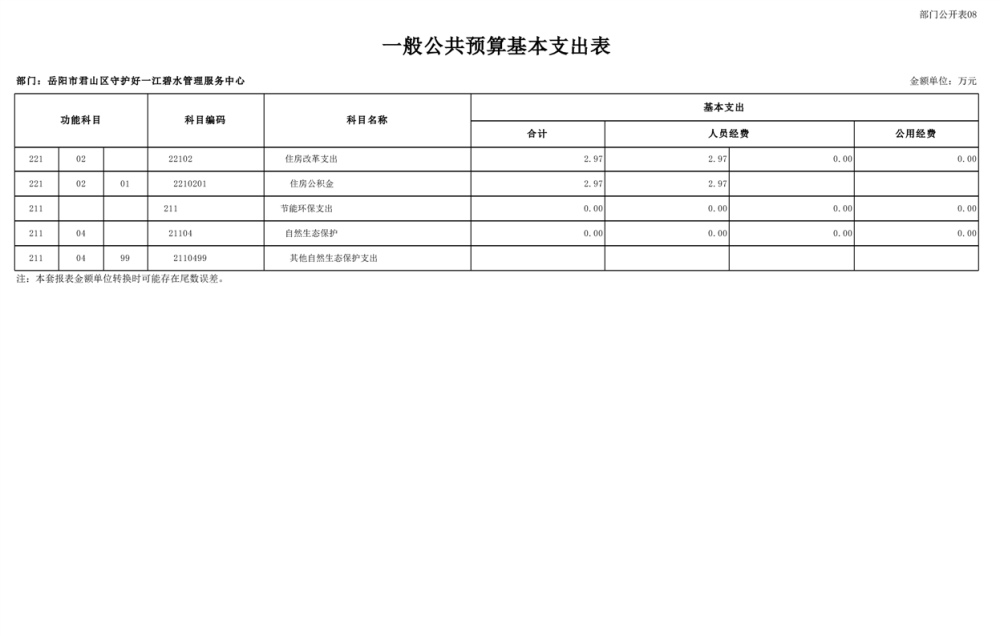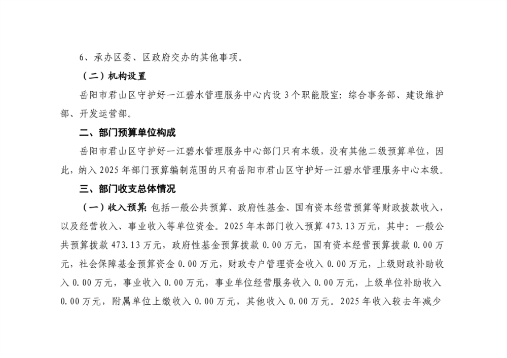 2025年岳陽(yáng)市君山區(qū)守護(hù)好一江碧水管理服務(wù)中心部門預(yù)算公開(kāi)