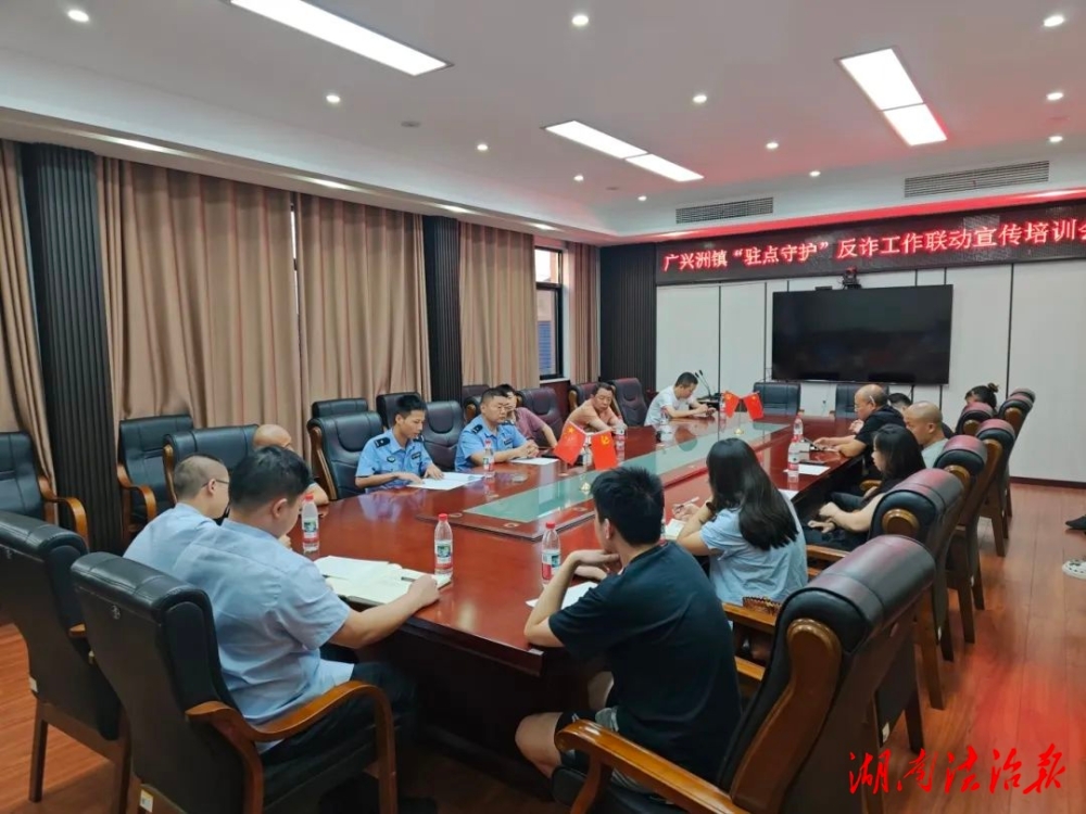 廣興洲派出所聯(lián)合鎮(zhèn)政府召集轄區(qū)內(nèi)三大運(yùn)營(yíng)商、銀行網(wǎng)點(diǎn)及金店負(fù)責(zé)人開(kāi)展“駐點(diǎn)守護(hù)”反詐宣傳培訓(xùn)工作。