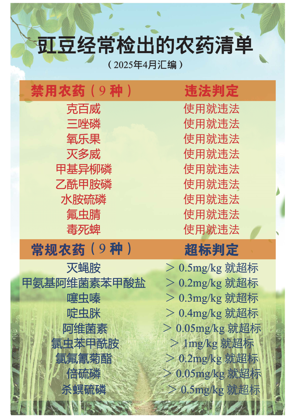 豇豆經(jīng)常檢出的農(nóng)藥清單