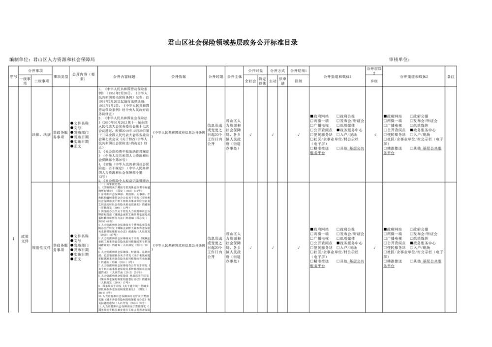君山區(qū)社會保險領(lǐng)域基層政務(wù)公開標(biāo)準(zhǔn)目錄(2025年)