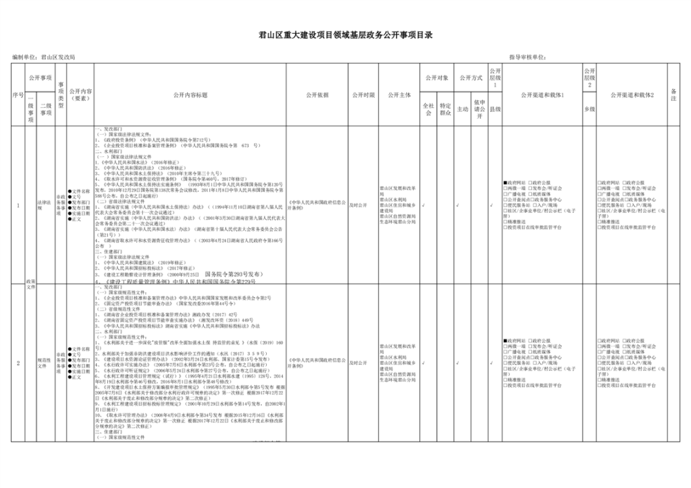 君山區(qū)重大建設(shè)項(xiàng)目領(lǐng)域基層政務(wù)公開標(biāo)準(zhǔn)目錄(2025年)